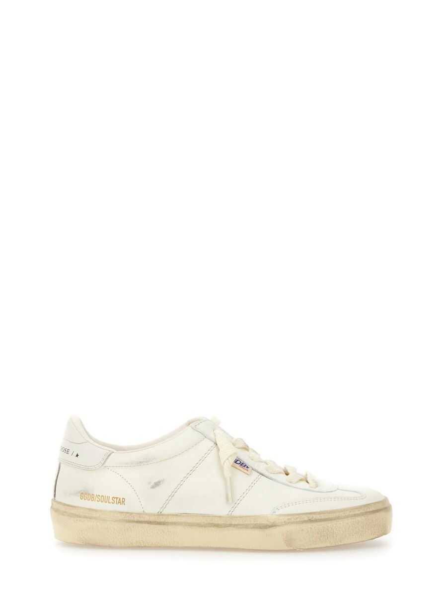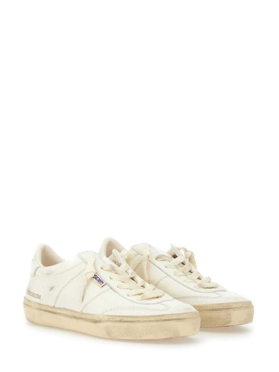 white calf leather distressed effect logo print to the rear logo print to the side logo patch to the side decorative stitching branded insole logo-print tongue front lace-up fastening round toe flat rubber sole