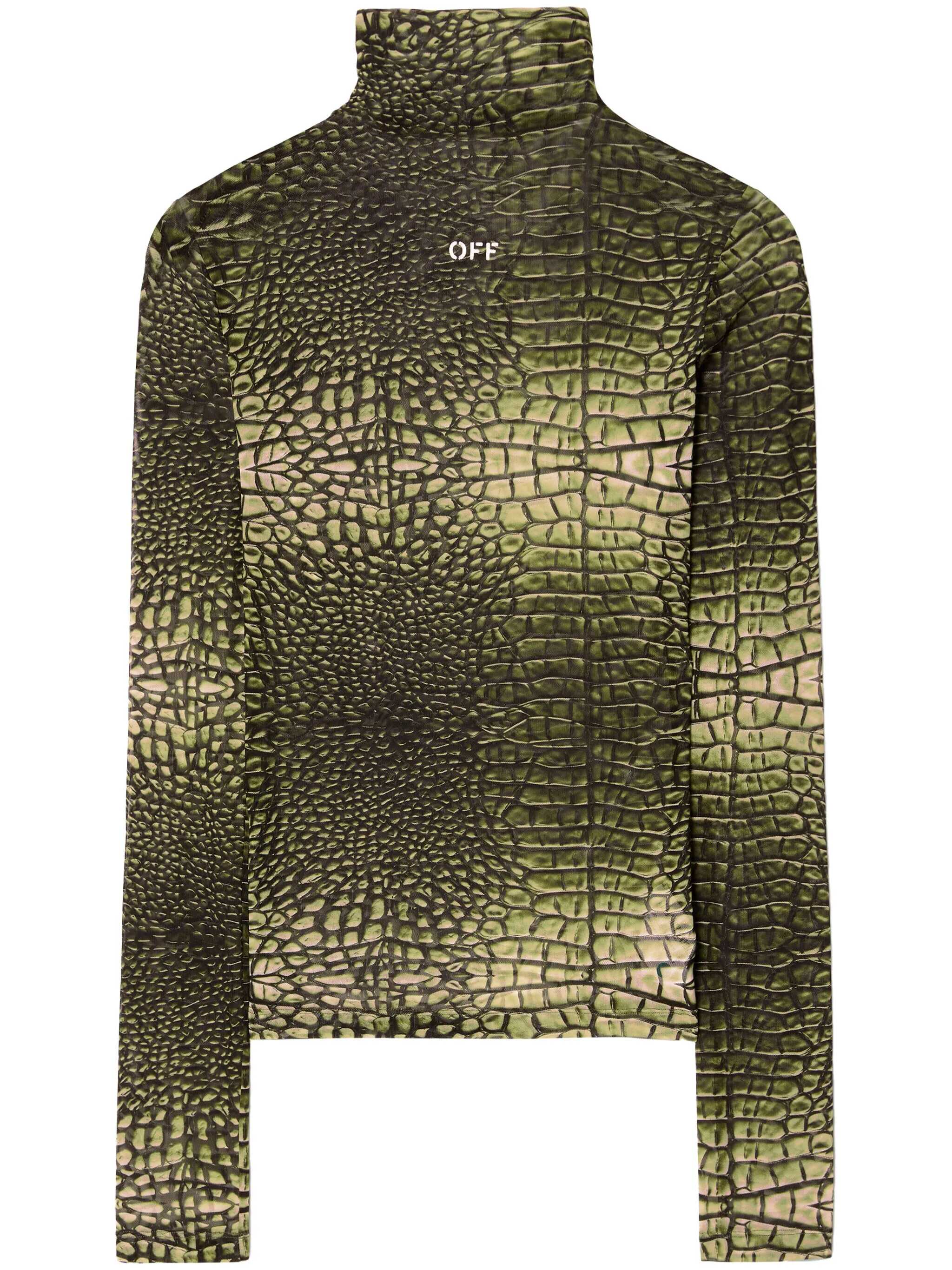 Green high-neck t-shirt with crocodile-effect print by Off-White