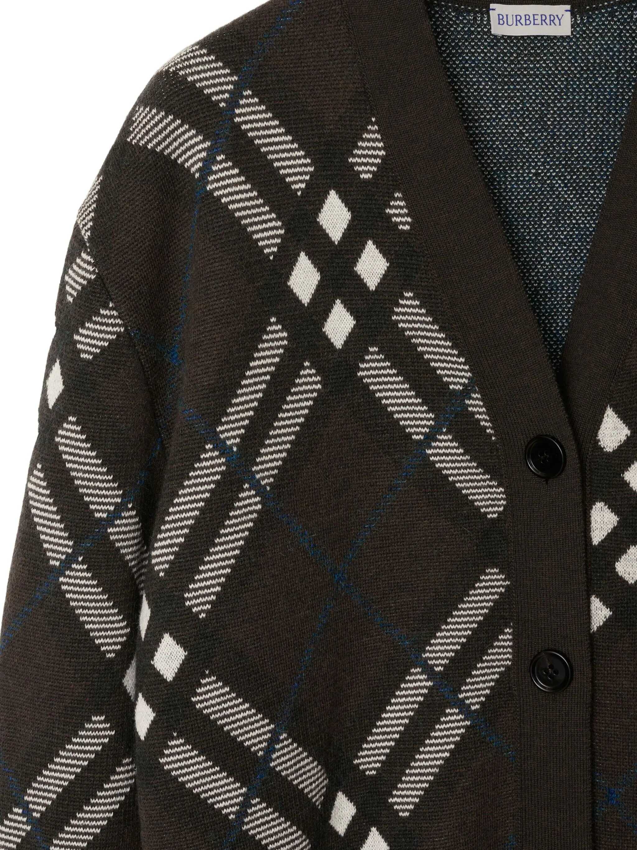 Burberry's Wool Cardigan is an elegant and sophisticated piece perfect for a versatile look. It features a V-neck on the front, which adds a touch of sophistication, and two side welt pockets, which offer practicality without compromising style. Ribbed cuffs and hem ensure a snug and comfortable fit. Burberry's iconic Archivio Check pattern gives the cardigan a distinctive and timeless touch, making it a must-have for those who enjoy classic yet modern elegance.