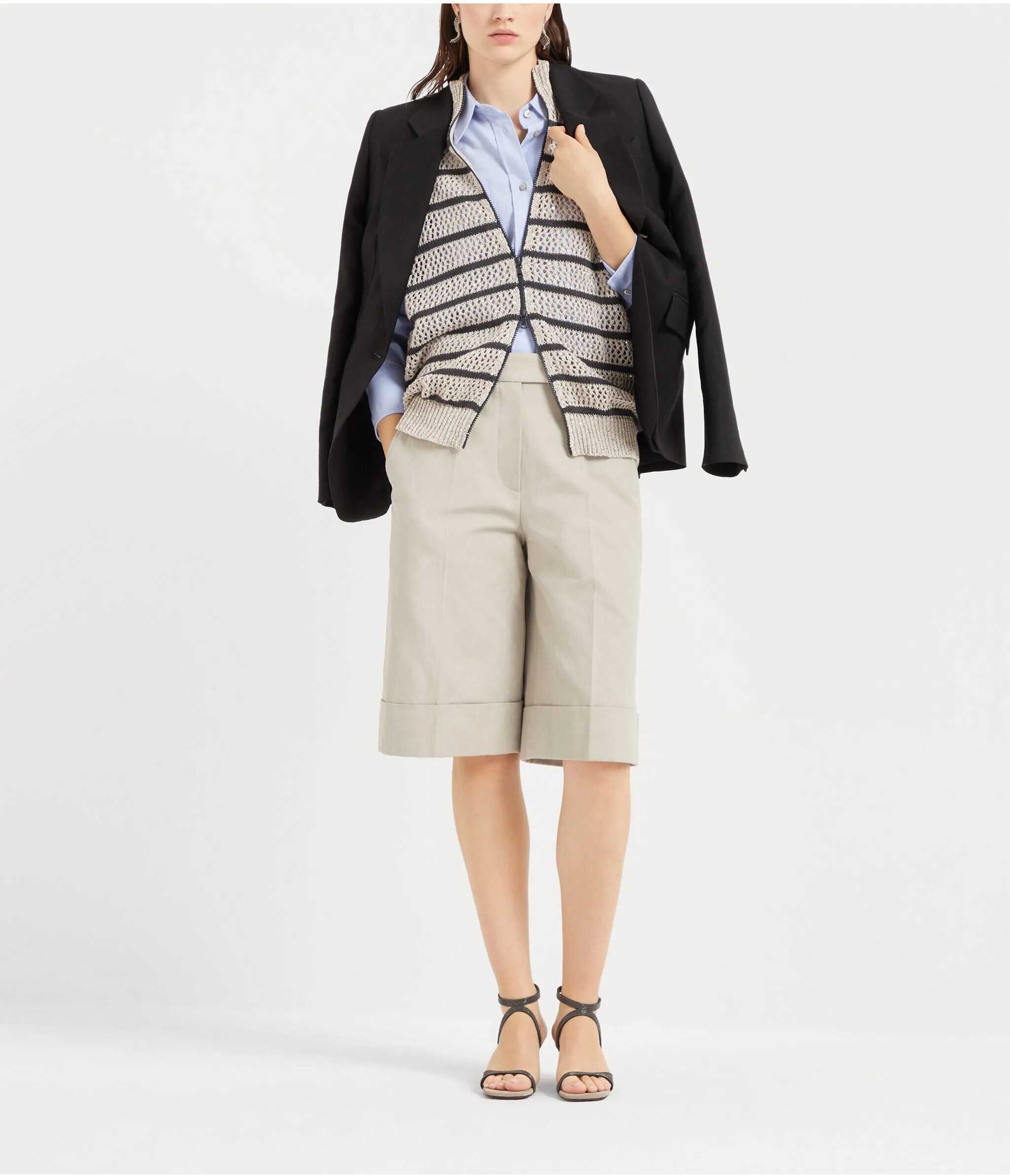 Brunello Cucinelli's Blazer Jacket is a sleek and sophisticated piece, perfect for a chic, lightweight look. The single-breasted button closure lends a clean, refined line, while the classic lapels add a touch of timeless style. On the front, there is a welt pocket, along with two slit pockets with flaps, combining functionality and elegance. Complemented by a back slit, this jacket offers the perfect design for any formal or casual-chic occasion.