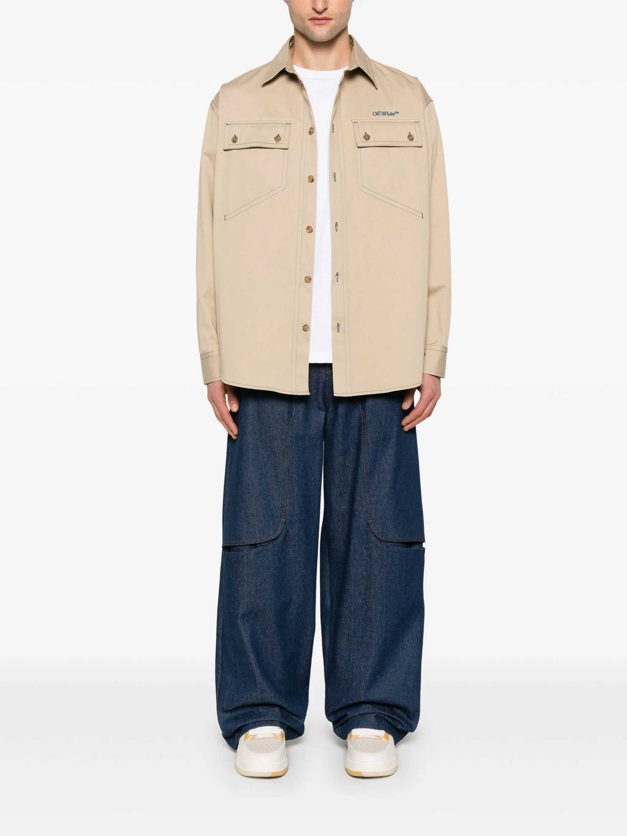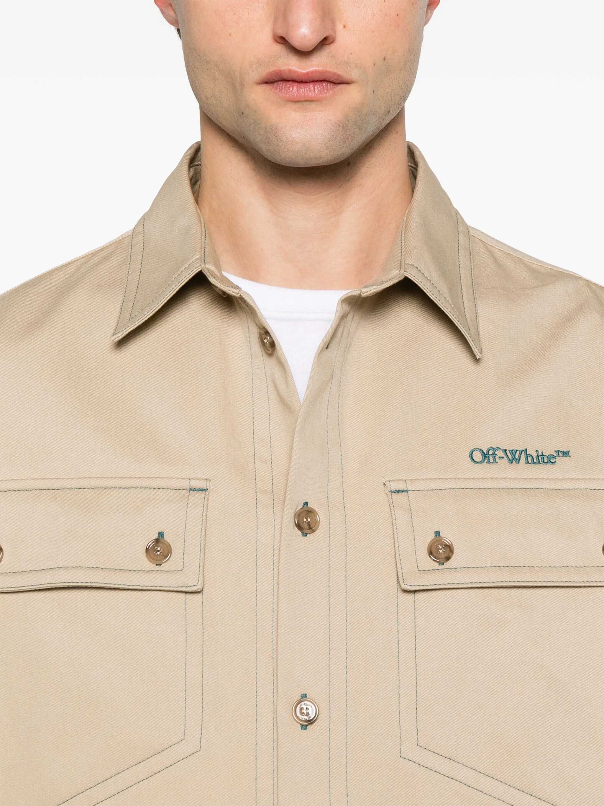 Off White Beige Stitch Cotgab Milit Overshirt, Buttons Closure On The Front, Regular Collar, Long Sleeves, 2 Pockets With Buttons Closure, EU SIZE (IT)