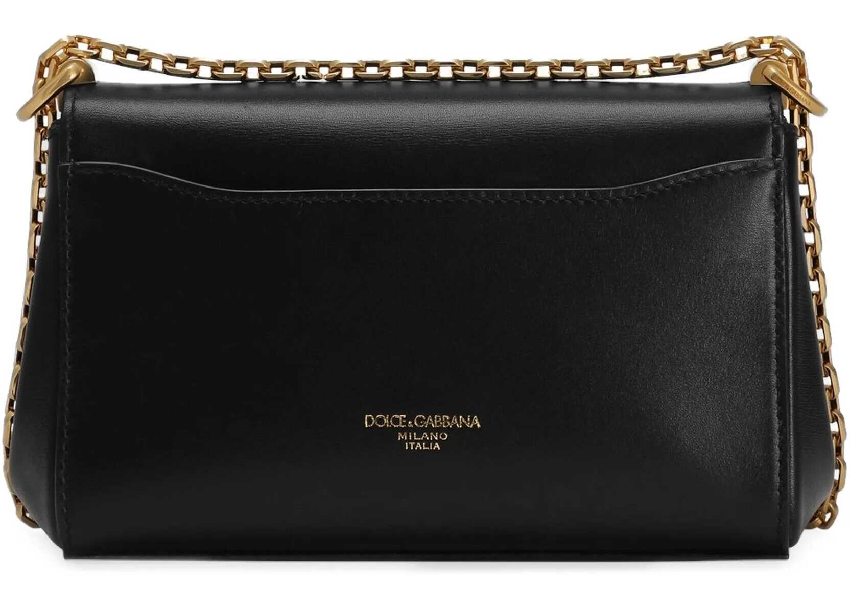 Mini Marlene bag in black pebbled calfskin leather. It features a front flap with a logoed turn-lock closure, a sliding chain shoulder strap, a flat back pocket, a single main compartment, an internal flat pocket, and four metal feet on the bottom. Dust bag included. Any imperfections in the leather are not defects but a characteristic of the material.