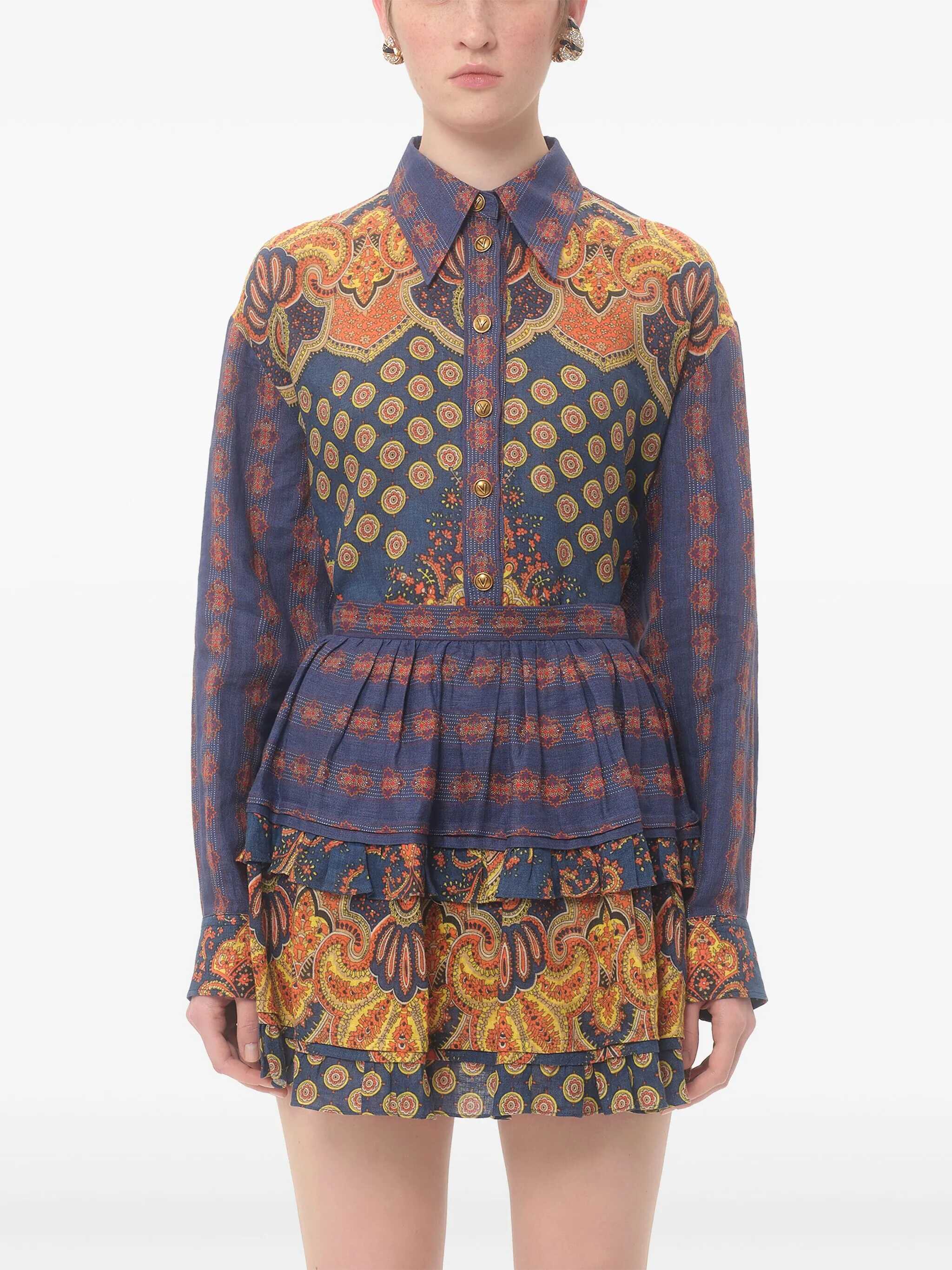 Valentino Garavani Blue Shirt, Golden V-Logo Buttons Closure On The Front, Regular Collar, Patterned, V-Logo Buttons On Cuffs, EU SIZE (IT)