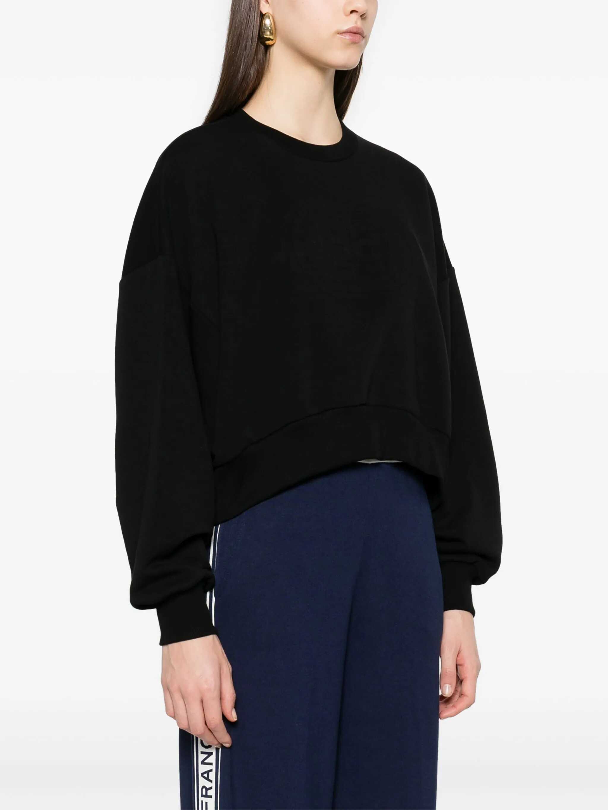 Long-sleeved cotton sweatshirt with oversized fit, ribbed trim on the edges. The protagonist is the maxi embossed logo on the front of the garment, created in relief for a 3D effect.