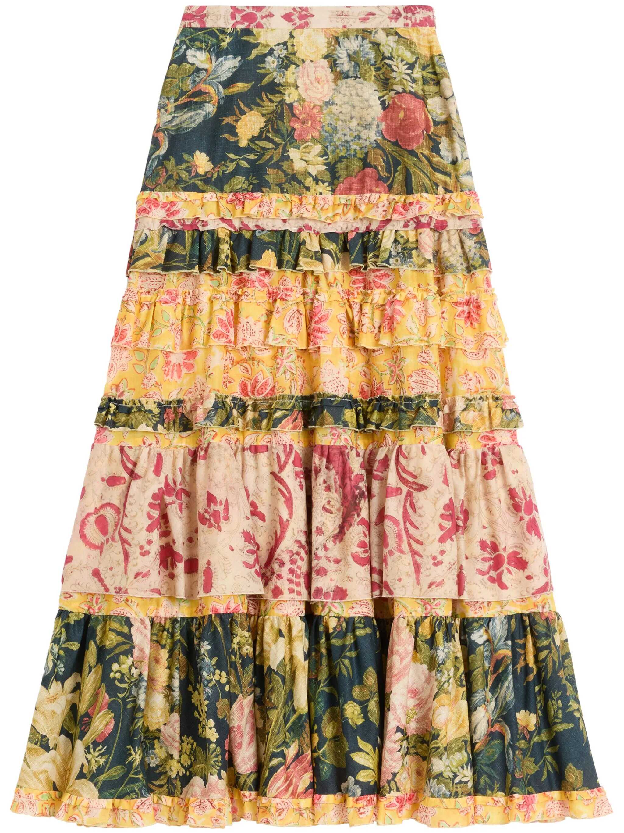 Valentino Garavani Multicolor Pattern Skirt, High Waist, Lateral Zip And Hook Closure, Flounces Details, Printed, EU SIZE (IT)