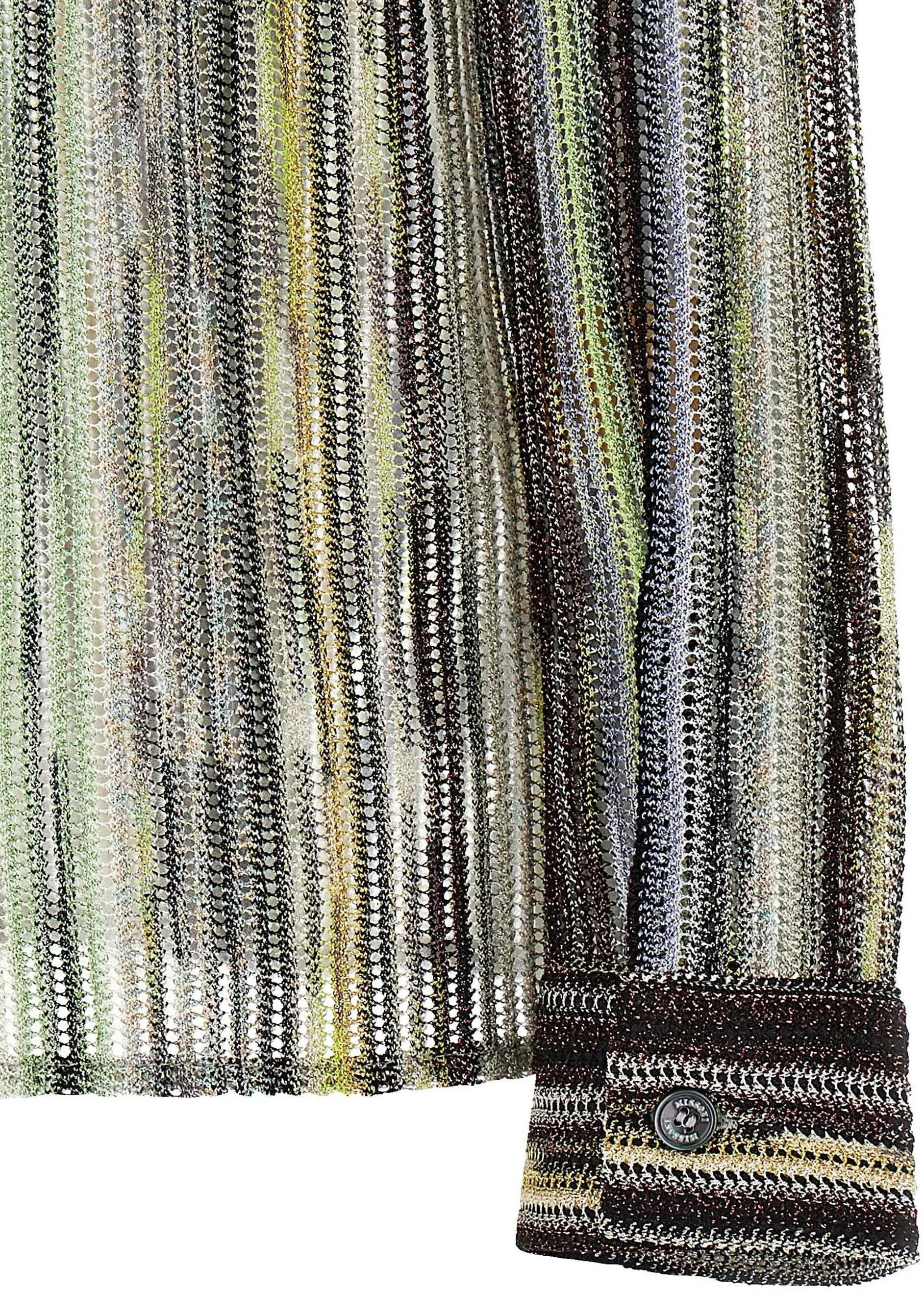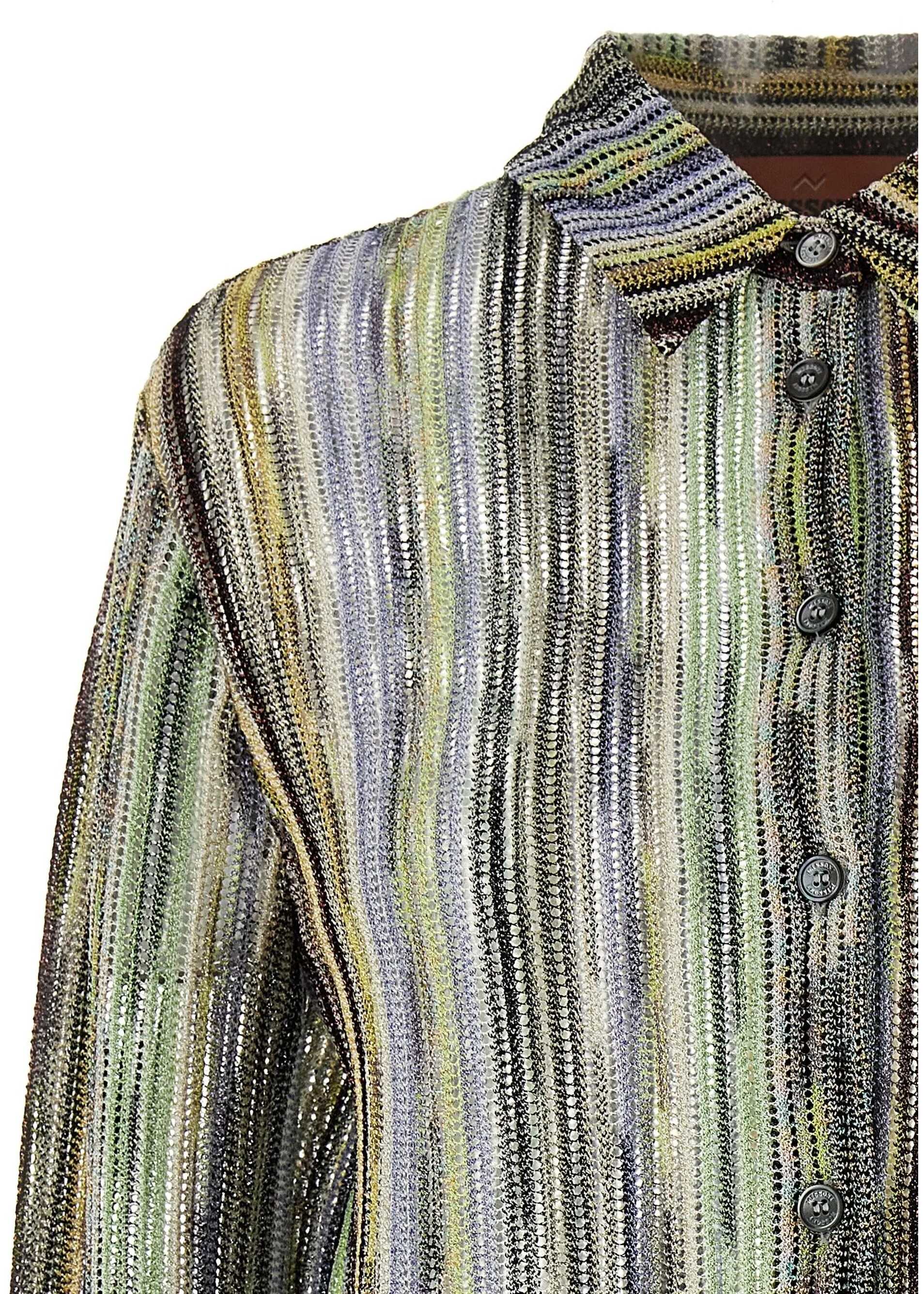 Missoni's Shirt features a classic collar and front button closure. The brand's iconic multicolored pattern adds a distinctive and vibrant touch. Adjustable button cuffs allow for a customized fit. The perforated design gives lightness and a refined detail, perfect for an elegant yet dynamic look. A garment that combines the brand's tradition with a modern, stylish twist.