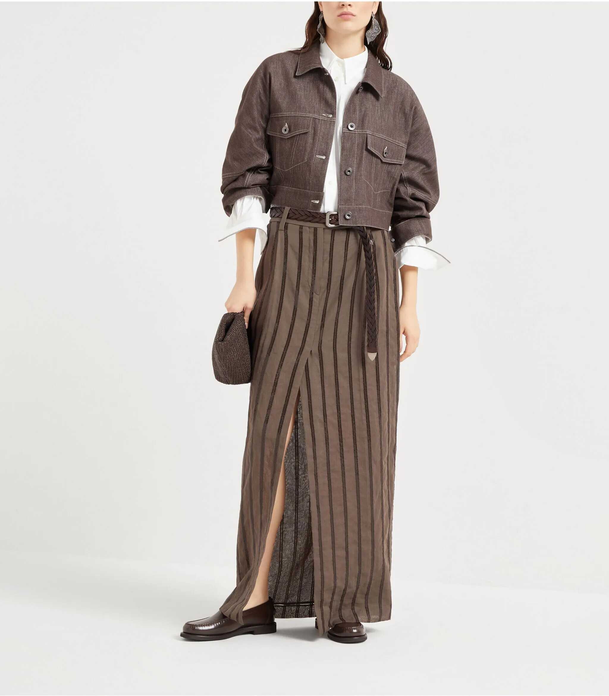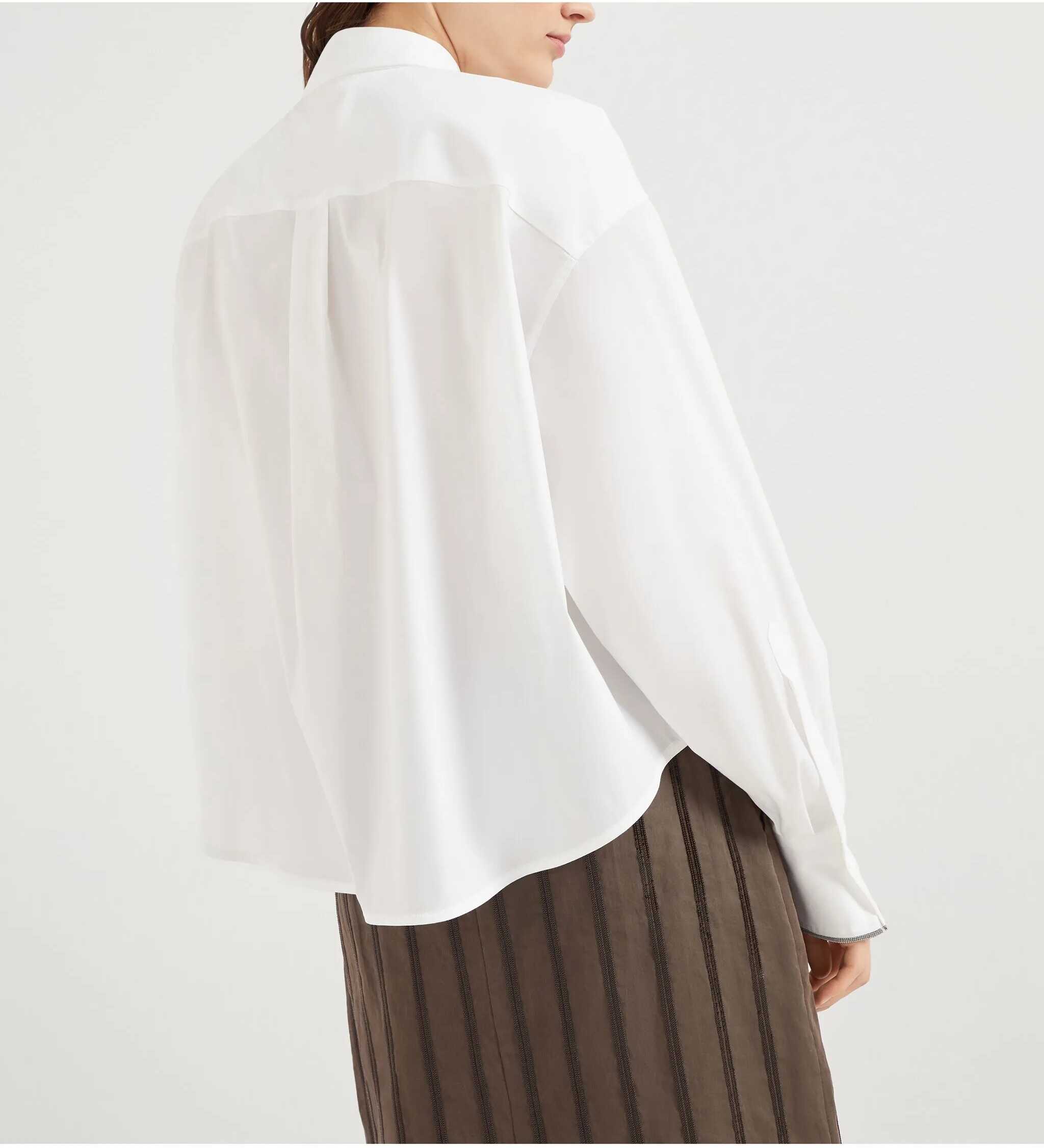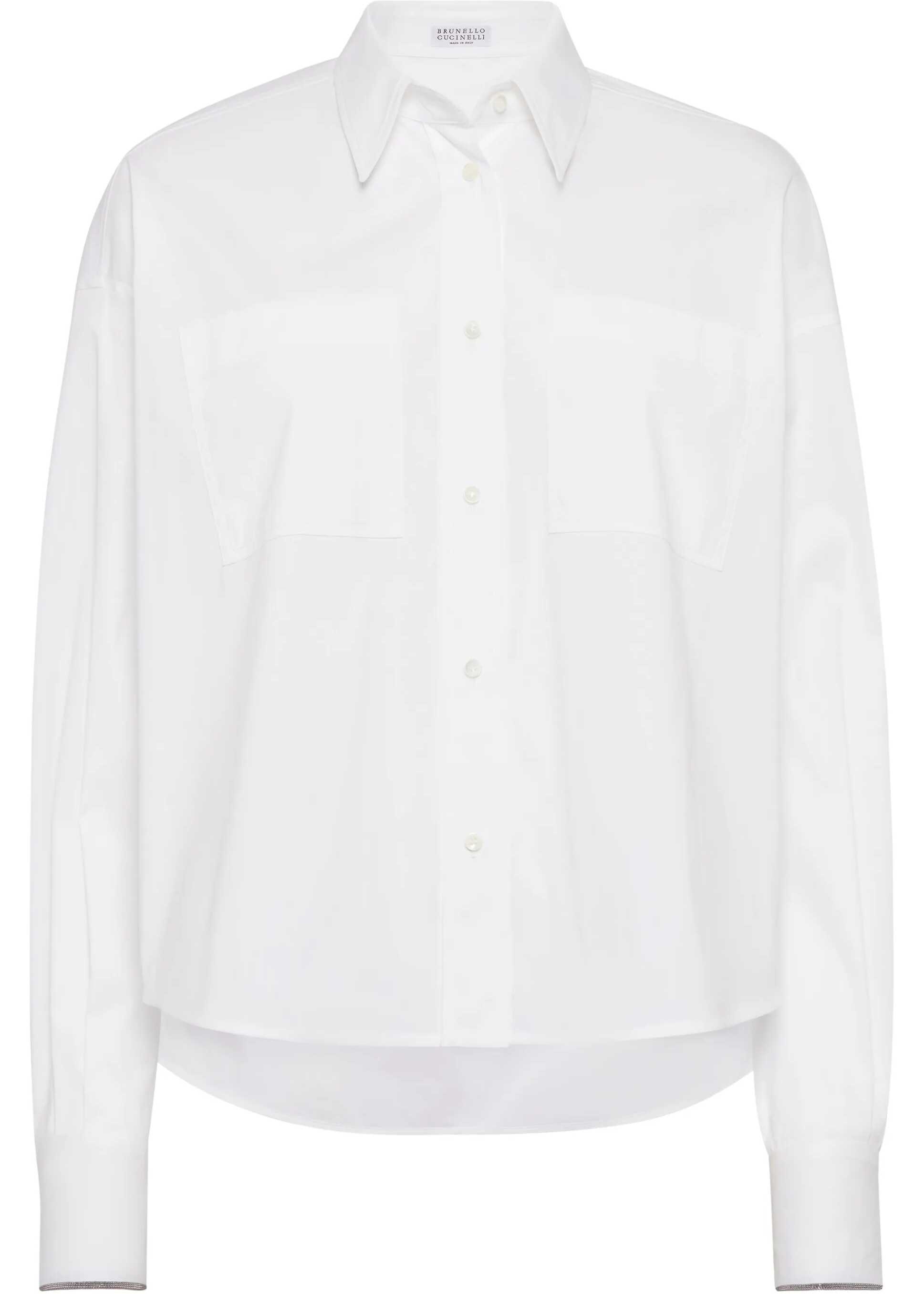 Brunello Cucinelli's cotton Shirt is a sophisticated and contemporary piece. It features a classic collar and front button closure, ideal for an elegant yet versatile look. The two patch welt pockets on the front offer a practical and elegant touch, while the adjustable button cuffs, embellished with iconic appliqué shiny jewels, add an understated luxury detail. The curved hem and oversized fit give a relaxed, modern look perfect for creating a casual-chic, stylish and fashionable look.