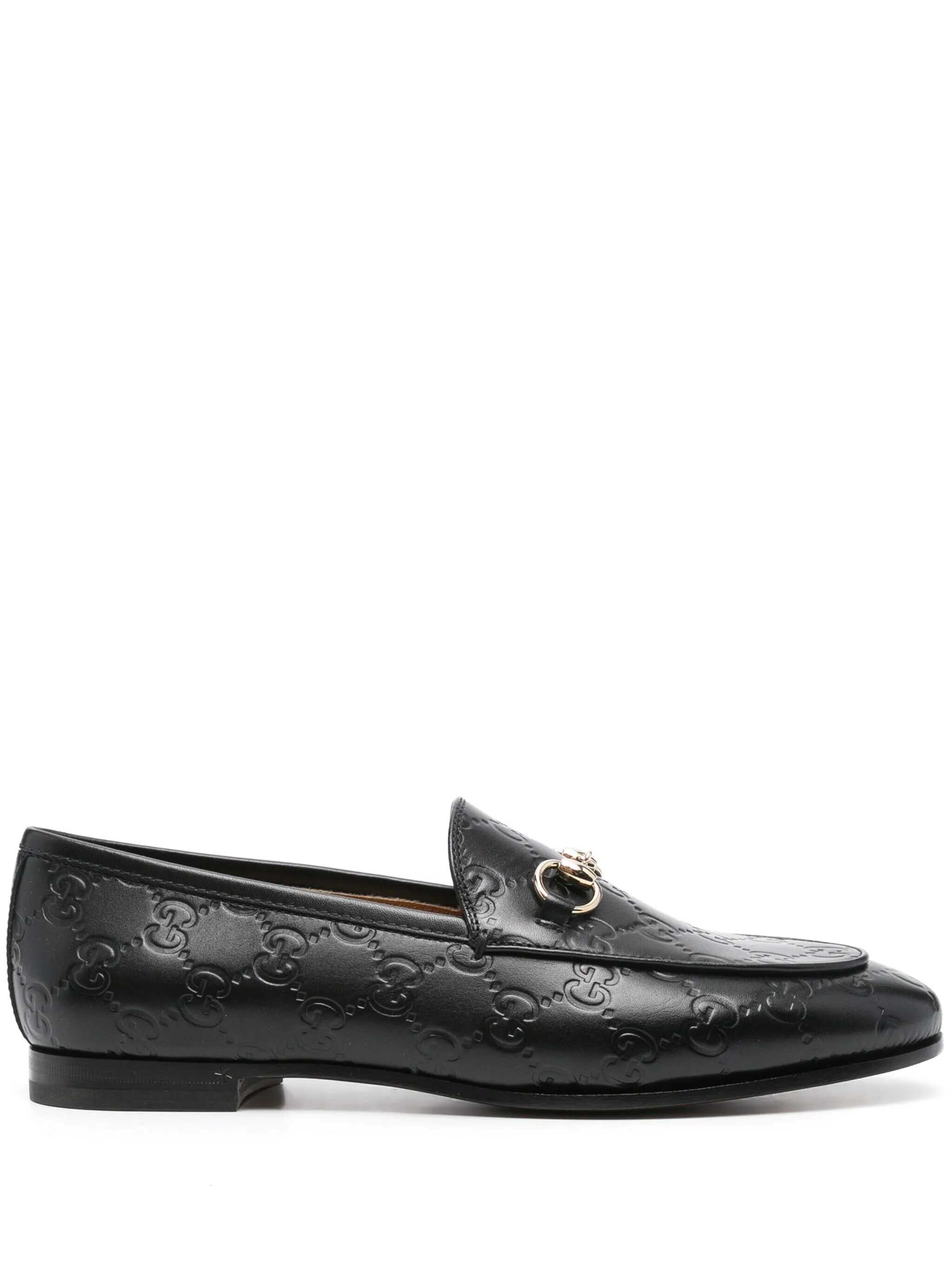 Gucci Black Gucci Jordaan Loafers, Round Toe, Gg Tone On Tone Logo Allover, Frontal Morsetto Detail, EU SIZE (IT)