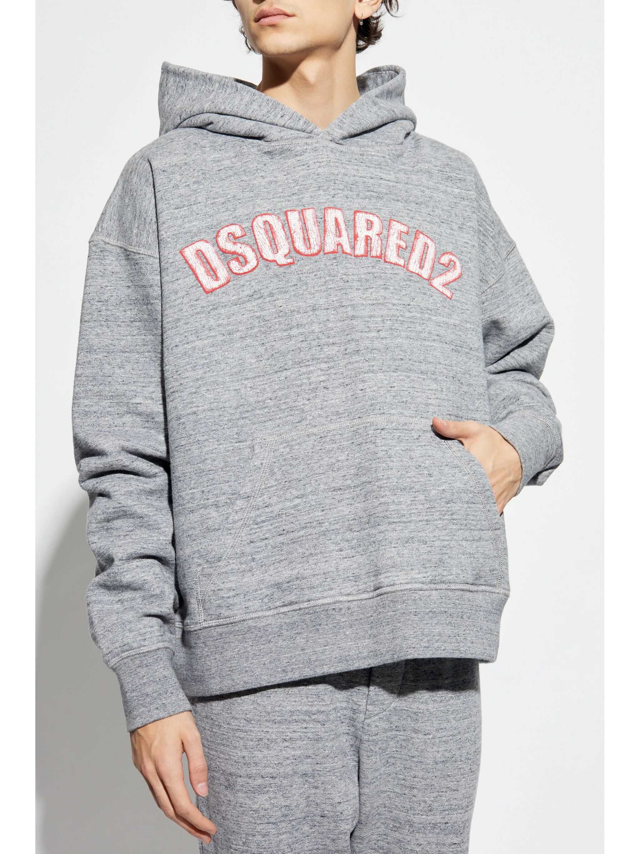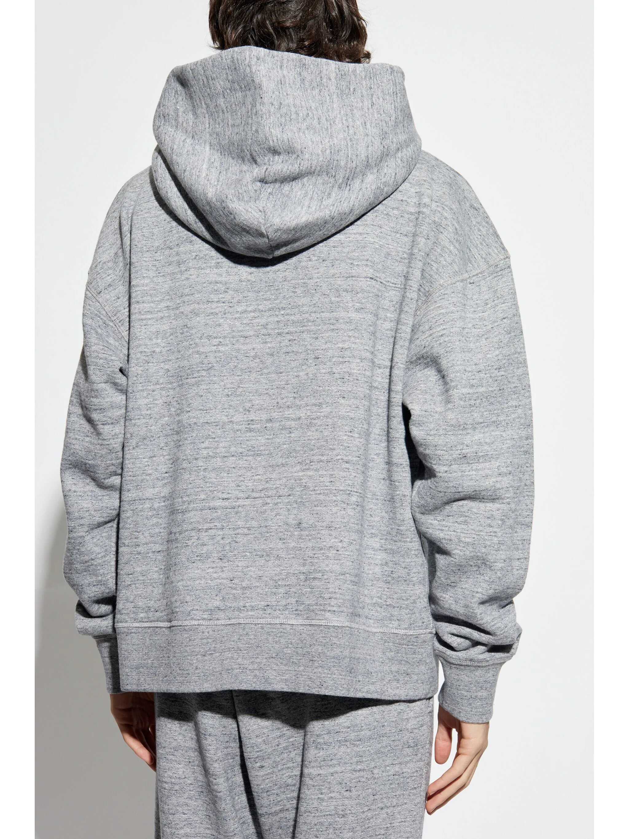 'NYC Fit' hoodie in melange brushed cotton, embossed front logo, kangaroo pocket, long cuffed sleeves