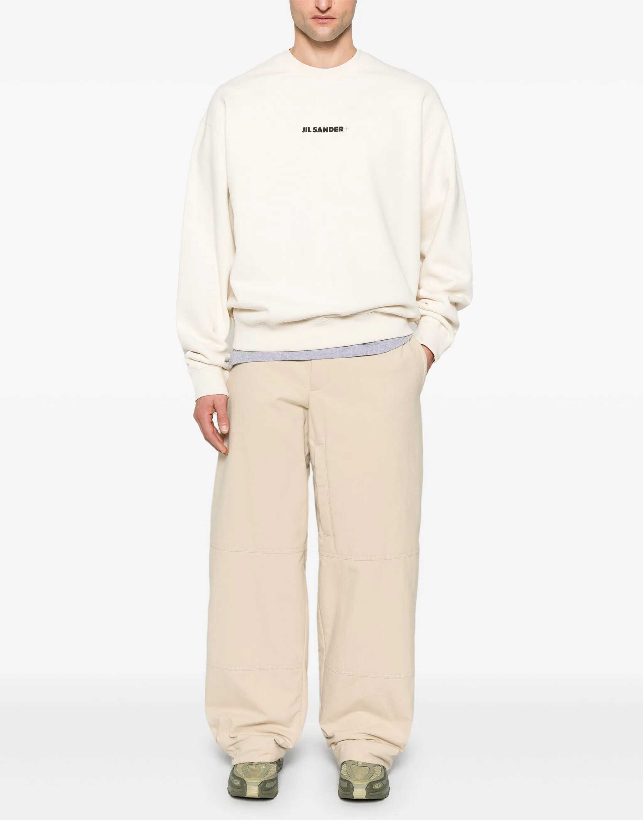 Jil Sander's Logo Sweatshirt is a minimalist and sophisticated piece, perfect for those seeking a casual yet sophisticated look. The ribbed crew neck, along with ribbed hems and cuffs, ensures a comfortable, structured fit. The brand's iconic signature printed in contrast on the front adds a distinctive, visible yet discreet detail.