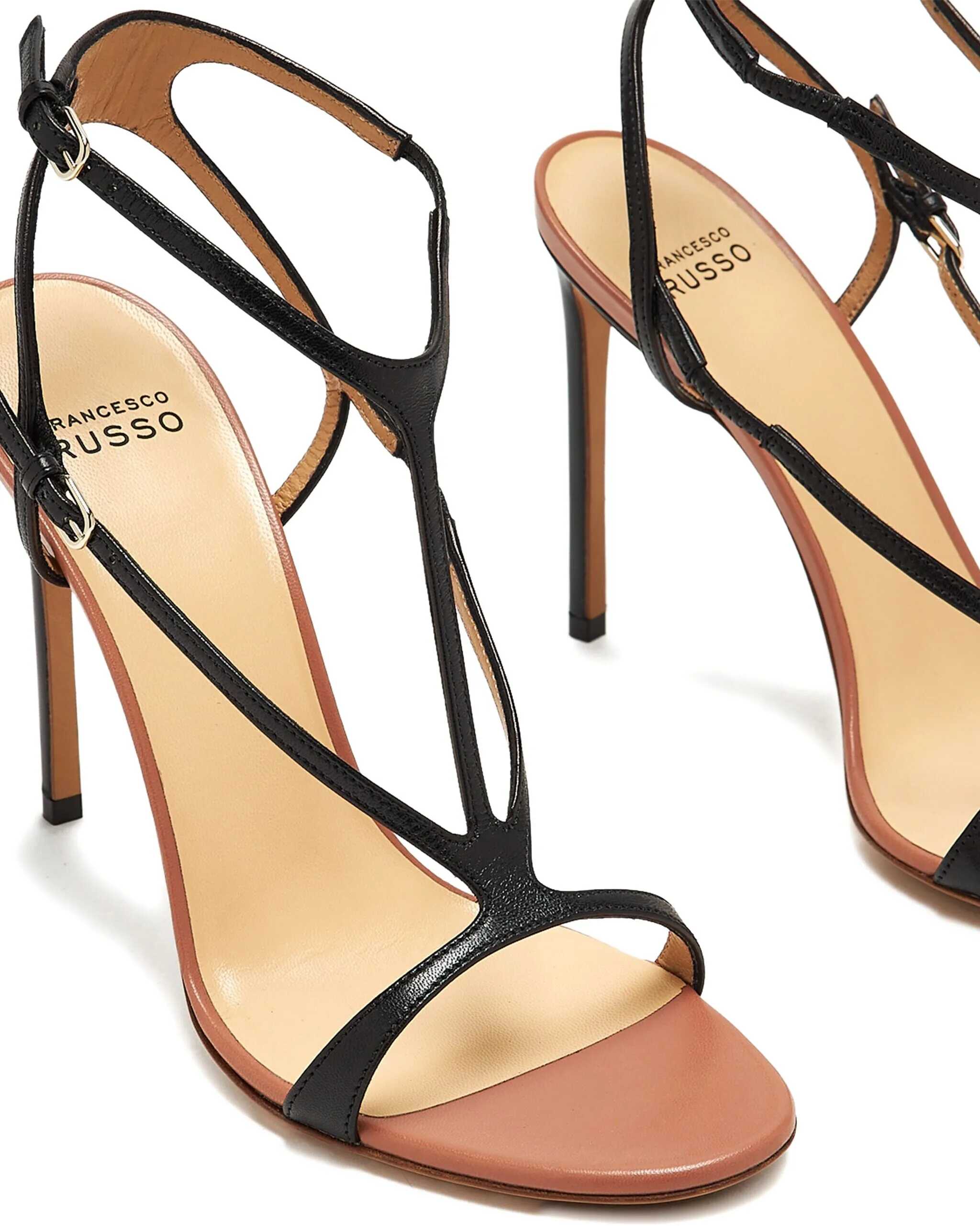 Leather Sandals by Francesco Russo, a perfect balance of elegance and comfort. The round toe gives a refined look, while the front straps add a delicate and sophisticated touch. The closure by adjustable buckles at the ankle loop allows for a personalized and secure fit. The leather stiletto heel slims the figure, completing the design with an elegant and feminine silhouette. The contrasting branded insole adds an exclusive and recognizable detail for a look that won't go unnoticed. Perfect for special occasions or for a touch of everyday style.