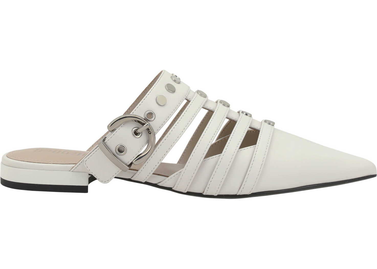 Pinko's Gianira 17 leather Mules are an elegant and sophisticated design. The elongated toe gives a tapered look, while cut-out details on the front add a touch of originality and femininity. The front adjustable buckle strap allows for a personalized and secure fit. The slight block heel provides stability and comfort without compromising style. The branded insole adds an exclusive detail that makes these pumps even more refined. Ideal for a chic and modern look.