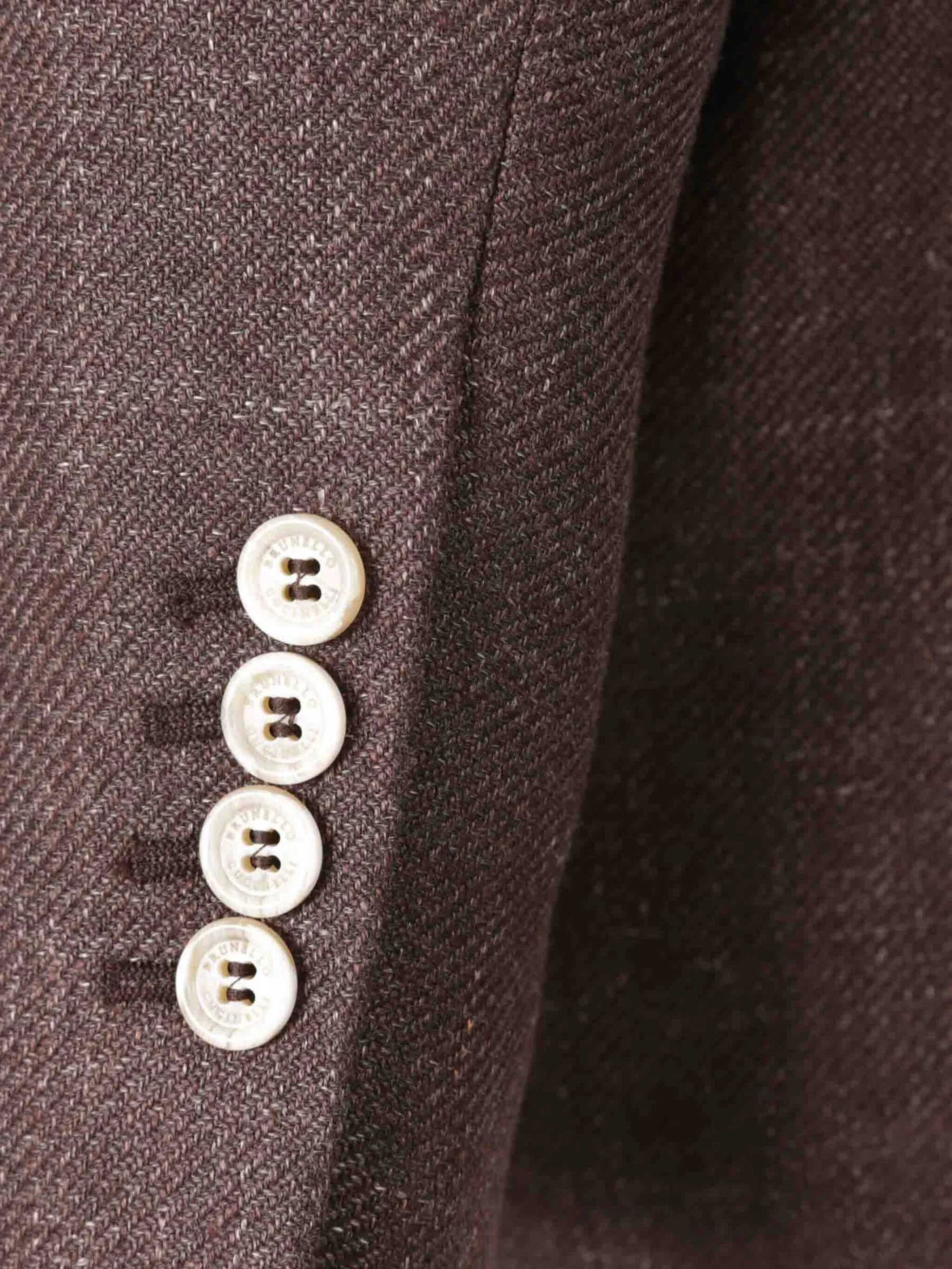The linen Blazer Jacket by Brunello Cucinelli is an elegant and sophisticated piece, perfect for a refined yet light look. The front button fastening and the classic lapels give it a formal yet modern look. The three welt pockets with flap on the front and the welt pocket add a practical and distinctive touch, keeping the design clean and tidy. Two slits on the back complete the piece, ensuring comfort and freedom of movement. The mélange pattern, with its light combination of colours, gives a nuanced and sophisticated effect, while the regular fit ensures a comfortable and versatile fit, perfect for different occasions.