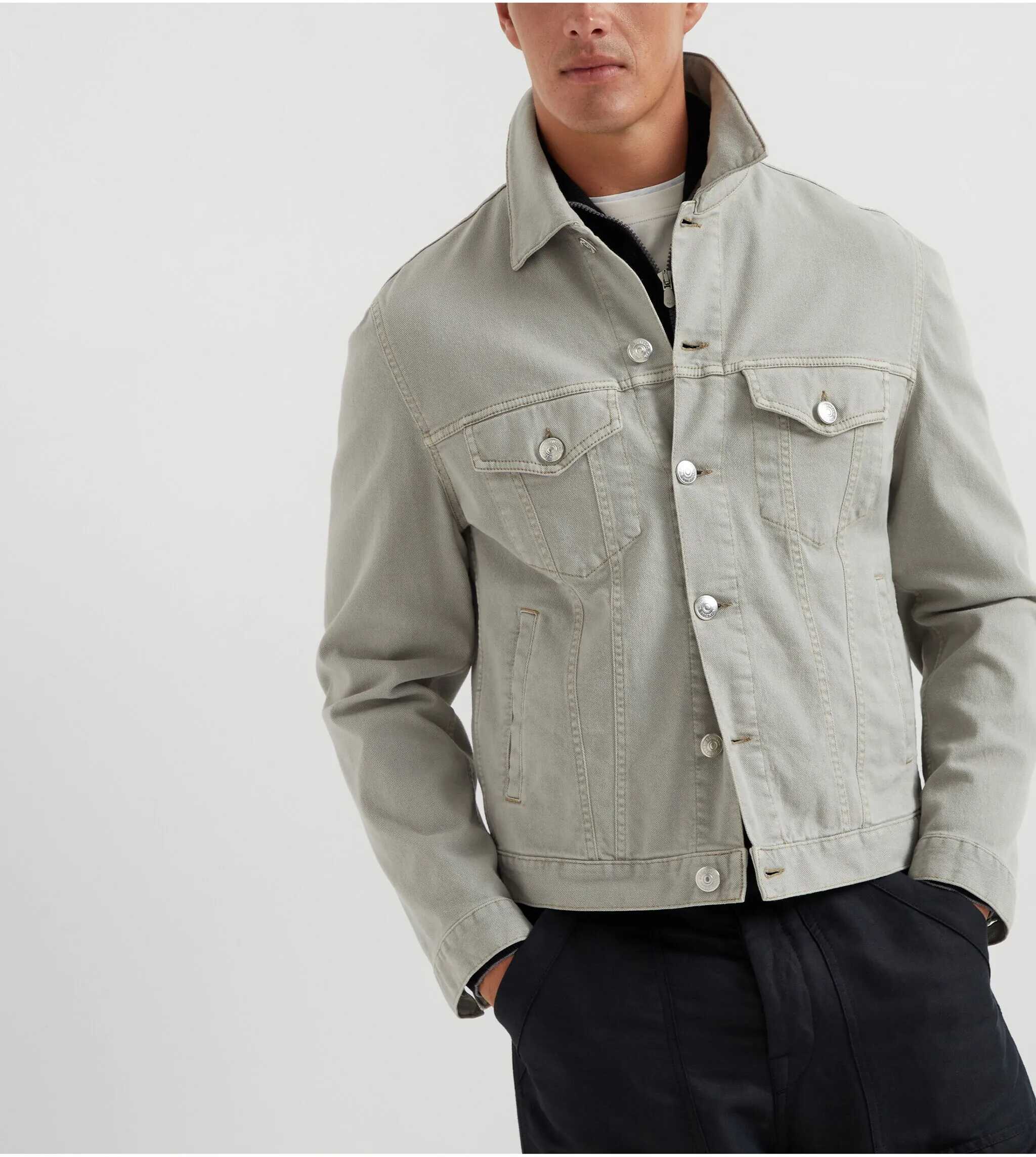 Brunello Cucinelli's Denim Jacket is a timeless and versatile style, perfect for those looking for a casual yet sophisticated look. The classic collar and button closure give it a traditional and neat look, while the two front patch pockets with flap and buttons add a functional and sophisticated touch. The two welt pockets complete the design with practical yet discreet details. Made of high-quality denim, this jacket is ideal for pairing with pants or jeans for a casual-chic outfit that combines comfort and elegant style