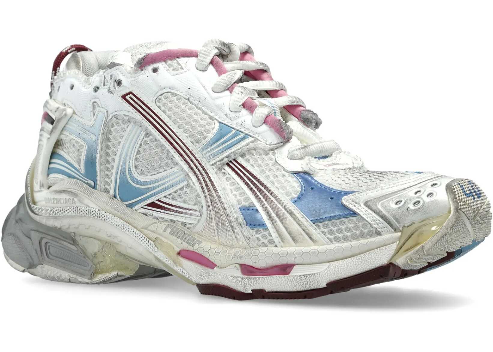 Balenciaga's Runner Sneakers feature a textured platform sole and a woven panel design. The closure is with laces and the size number embroidered on the toe. The front tab is decorated with a contrasting embroidered monogram, while the logo appears on the sole and insole. A mix of style and comfort signed Balenciaga.