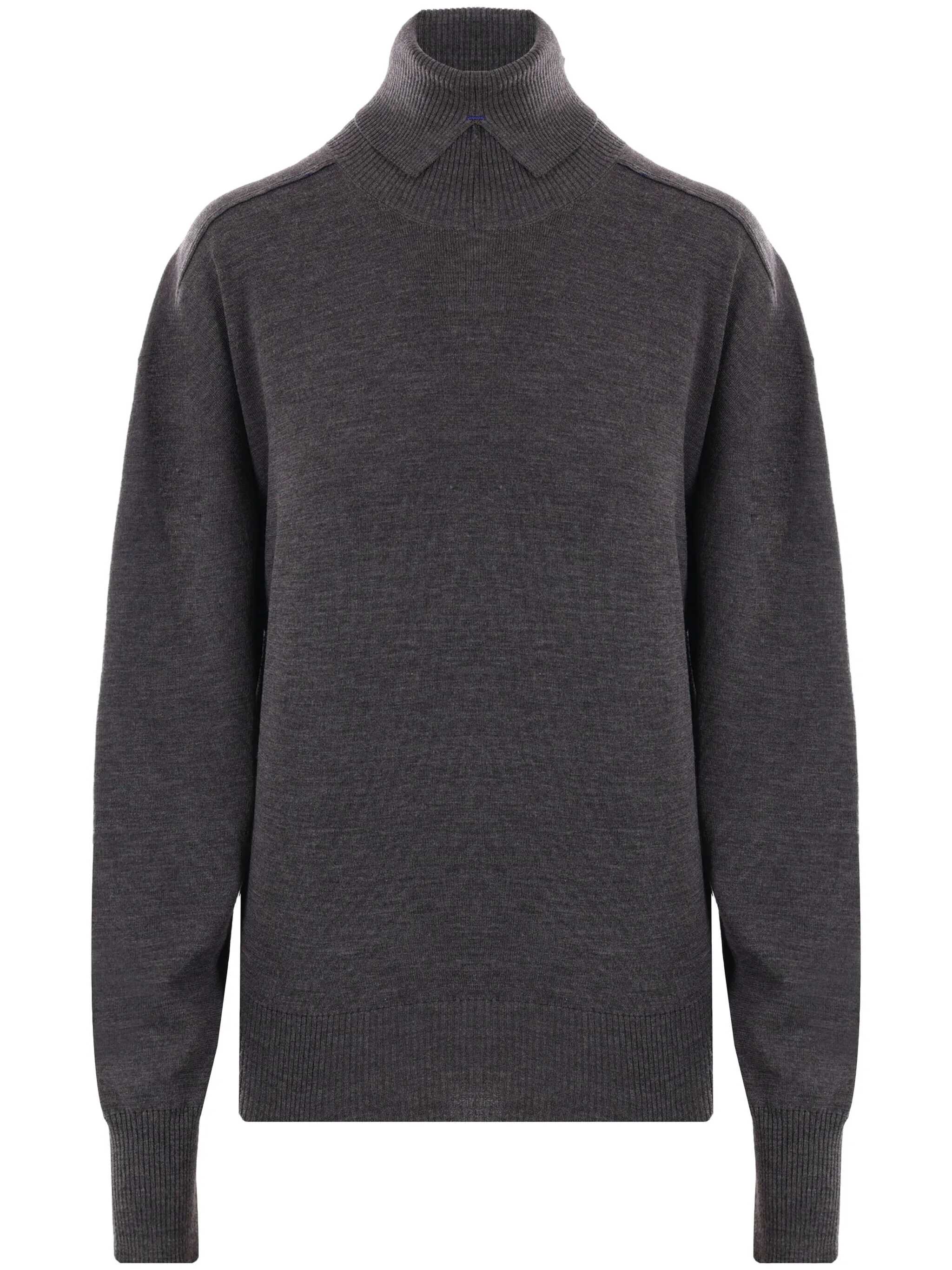 Burberry's turtleneck crafted in grey wool with exposed seams. It features high neck with front split, long sleeeve and ribbed edges.