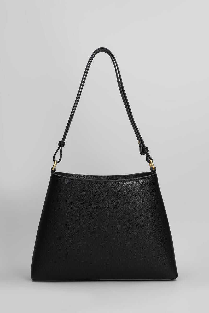 Embleme Shoulder bag in black leather, Height 210 mm, Width 280 mm, leather strap, magnetic closure, logo buttons , internal zip pocket, gold hardware, 100% leather, Made in Italy