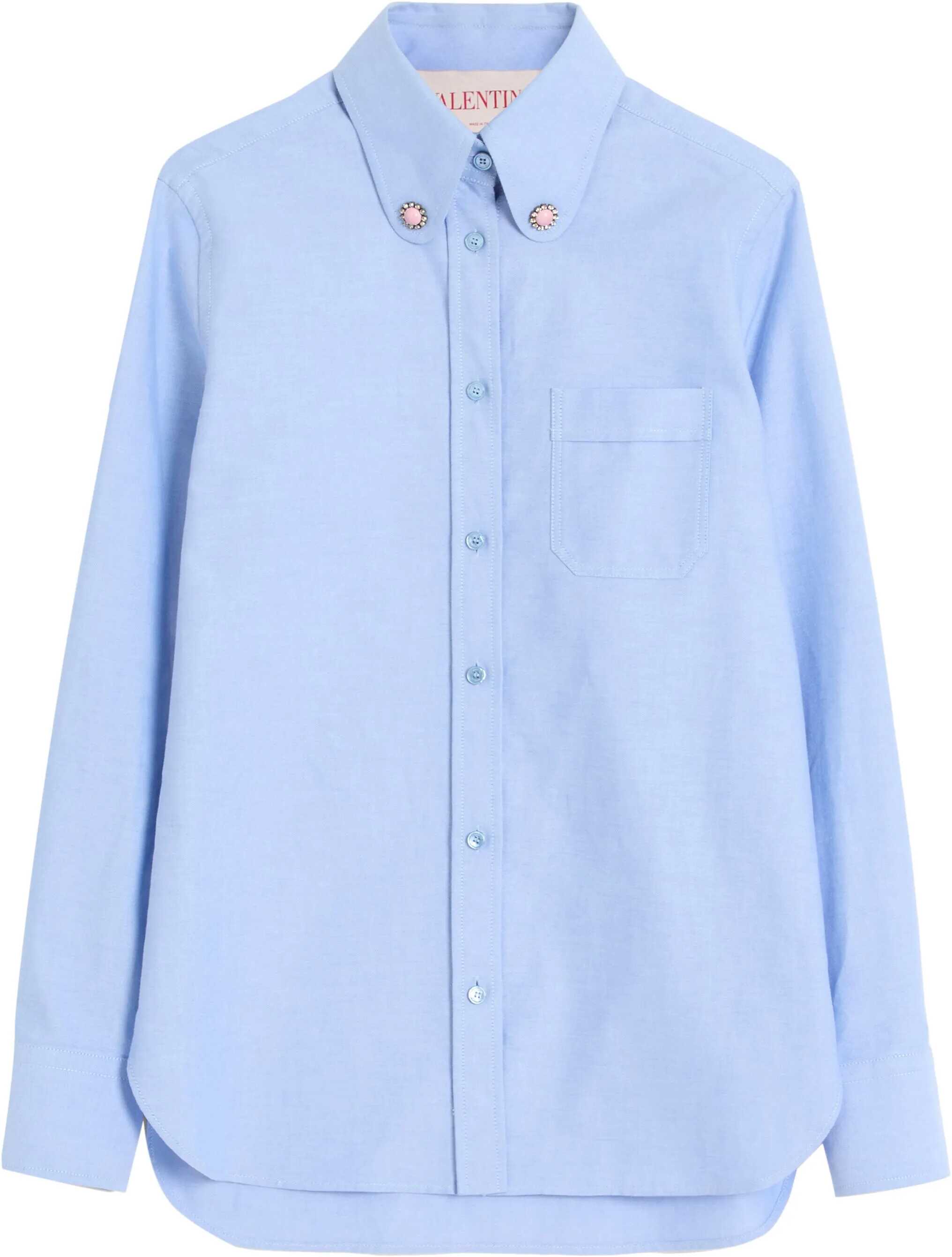 Valentino's stone detail Shirt is an elegant and sophisticated piece, perfect for those seeking a discreet yet distinctive touch of luxury. The front button closure and patch pocket on the front give a classic and functional design, while the real highlight of this shirt is the stones and rhinestones detail applied on the collar. These luminous embellishments add a glamorous and refined dimension to the garment, making it ideal for special occasions or elegant evenings. The mix of simplicity and precious details makes it versatile, perfect for both casual-chic pairings and a more formal look.