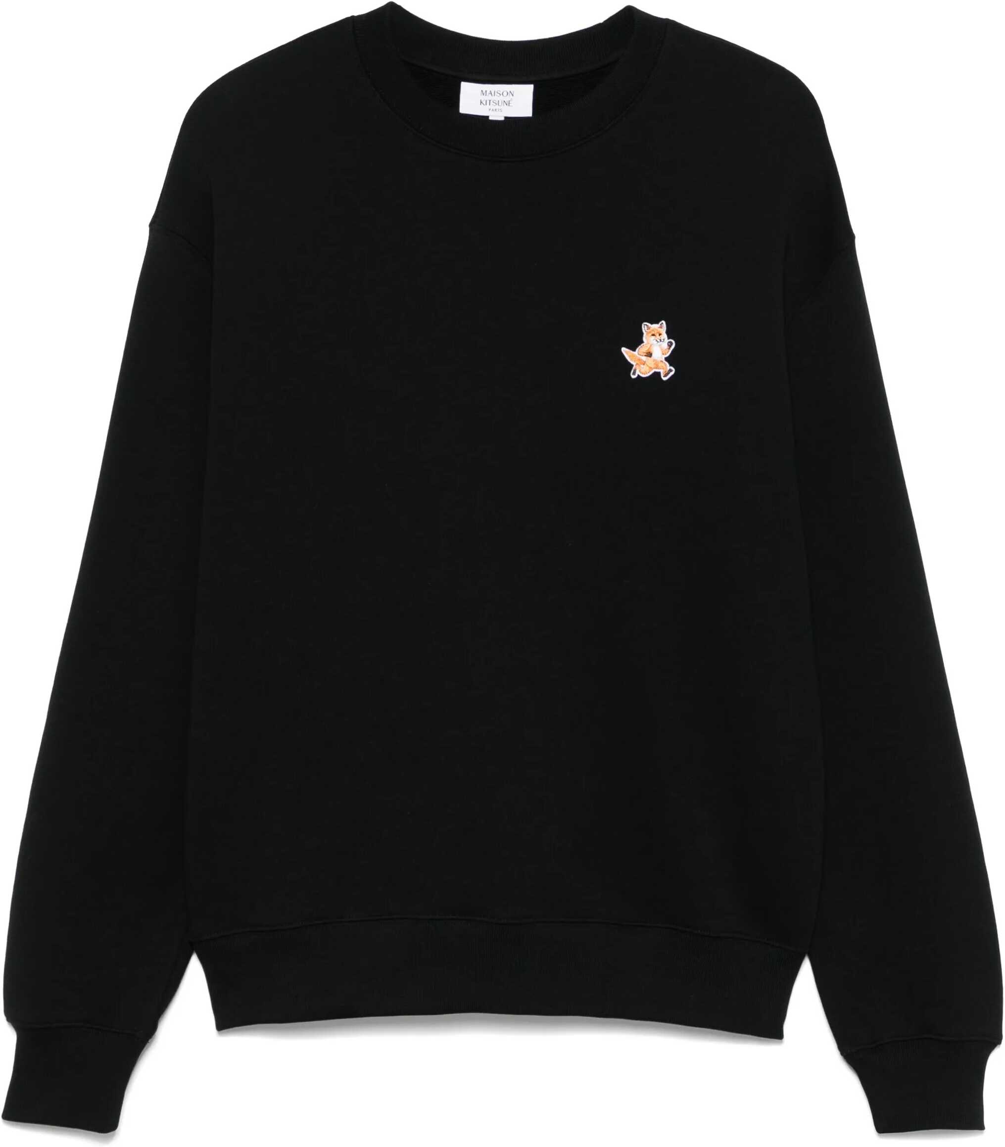 The Speedy Fox Cotton Sweatshirt by Maison Kitsuné is a casual and sophisticated piece. It features a ribbed crew neck, ribbed cuffs and a ribbed hem, for a comfortable and finished fit. The monochrome design makes it versatile, while the iconic Speedy Fox patch in contrasting color on the front adds a distinctive and playful touch. The regular fit offers comfort, making it ideal for a relaxed yet elegant look.