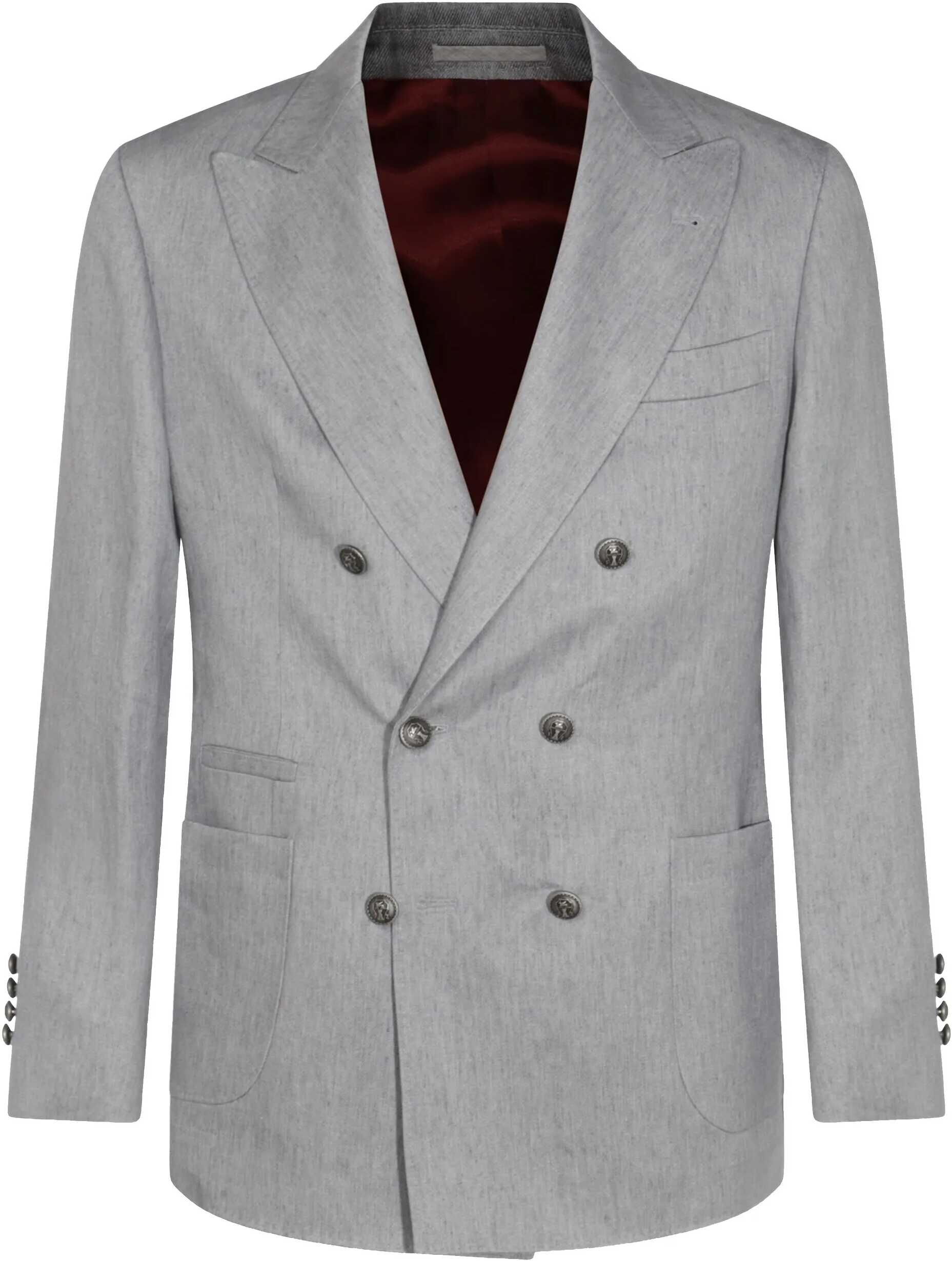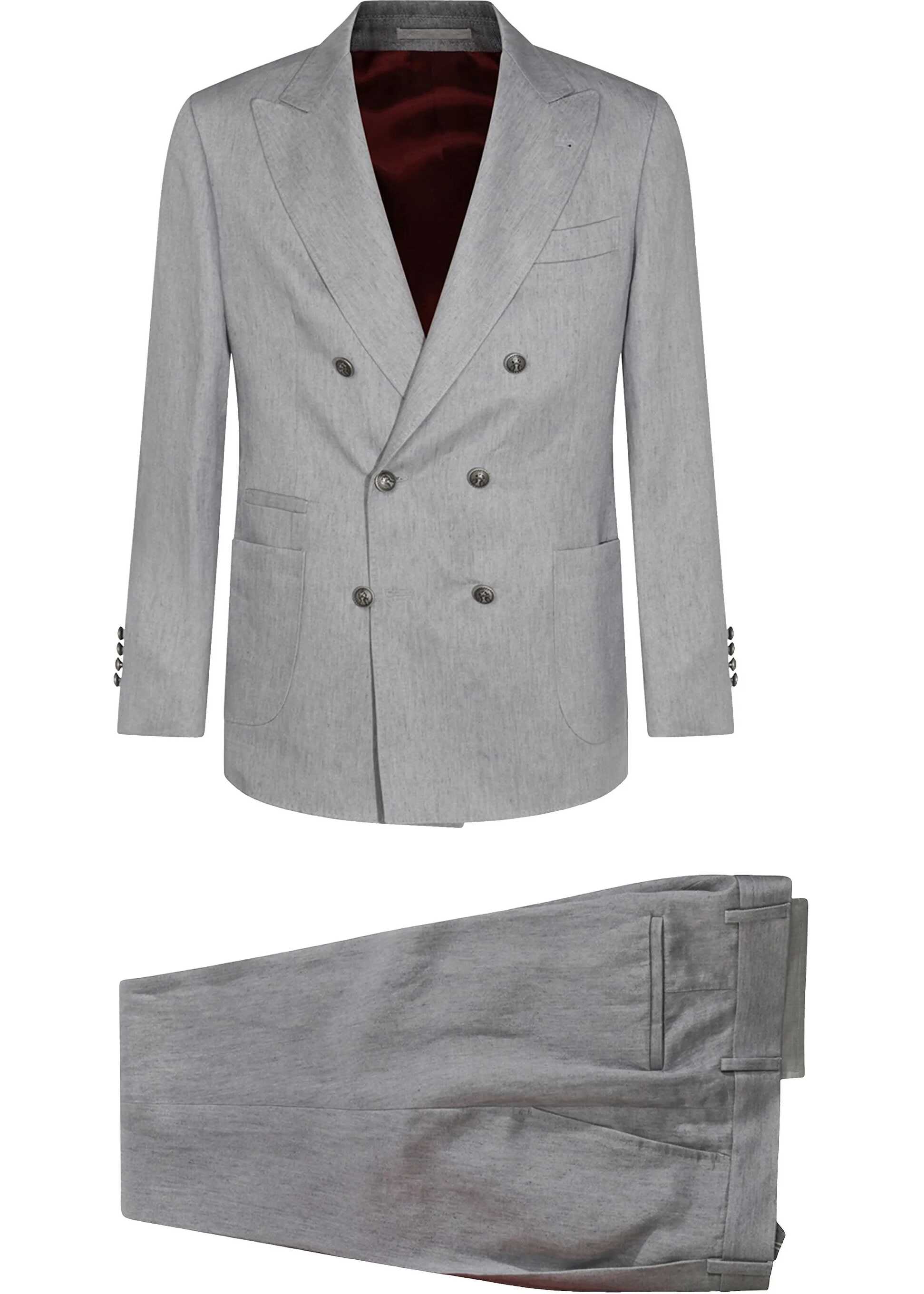 Brunello Cucinelli's linen Suit is an elegant and sophisticated piece, perfect for a formal or refined look. The linen blazer jacket features a double-breasted front button closure and two slit pockets applied to the front, offering a practical yet stylish design. A slit pocket on the front and spear lapels add a touch of sophistication. The classic linen pants, with a front zipper and button closure, feature two side slit pockets and two welt pockets on the back, while belt loops on the waistband allow for a customized fit. With its monochrome pattern, this suit is ideal for those seeking a high-quality suit that combines elegance and comfort.