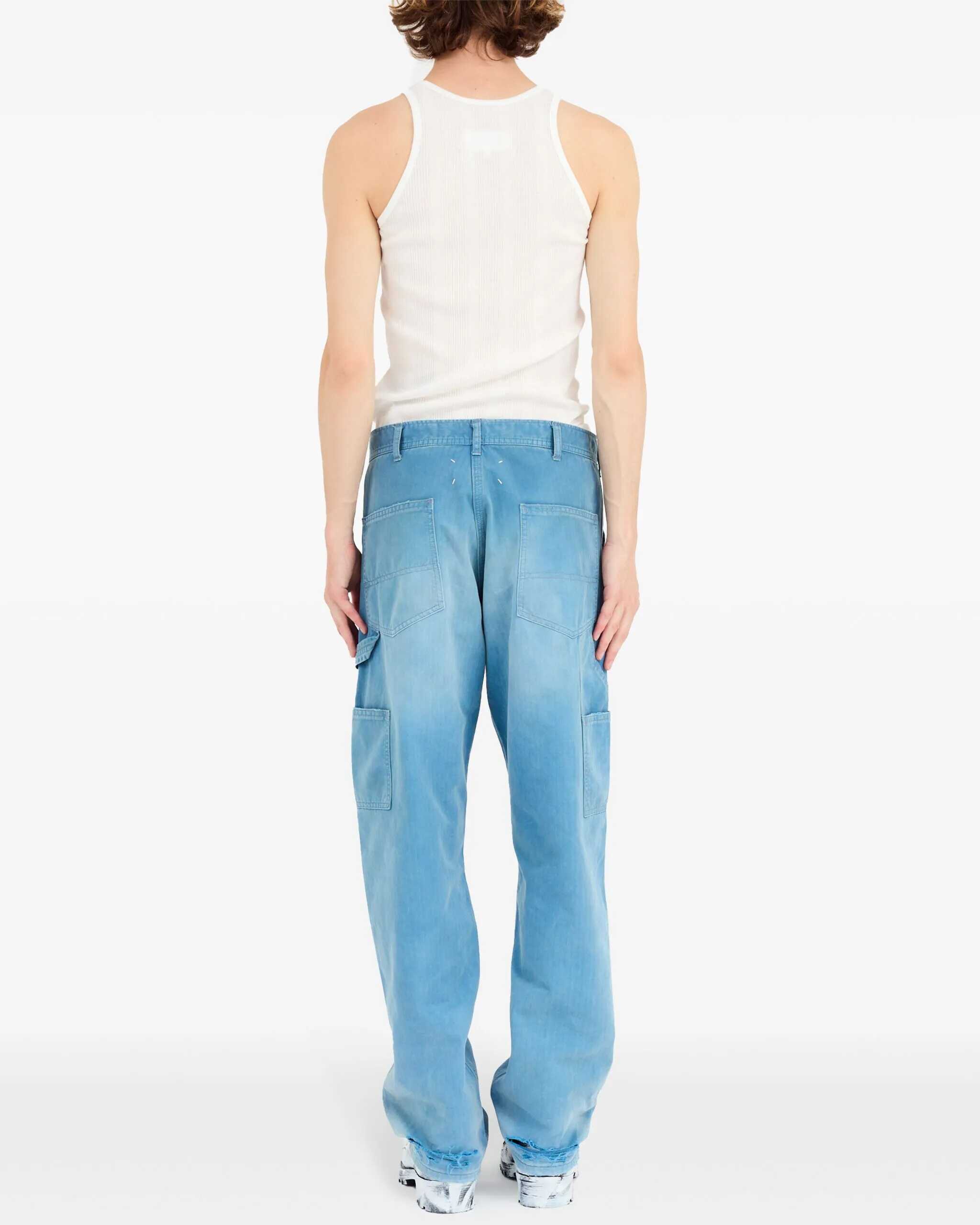 Margiela's cotton Jeans are a distinctive and sophisticated style, with a five-pocket design that offers functionality and practicality. They feature belt loops at the waist, allowing you to add a strap for a customizable fit. The detail of the two ticket pockets on the side panels adds a unique and original touch to the design. The vintage design with a worn effect gives the jeans a lived-in and refined look, perfect for those looking for a casual look but with a touch of class.