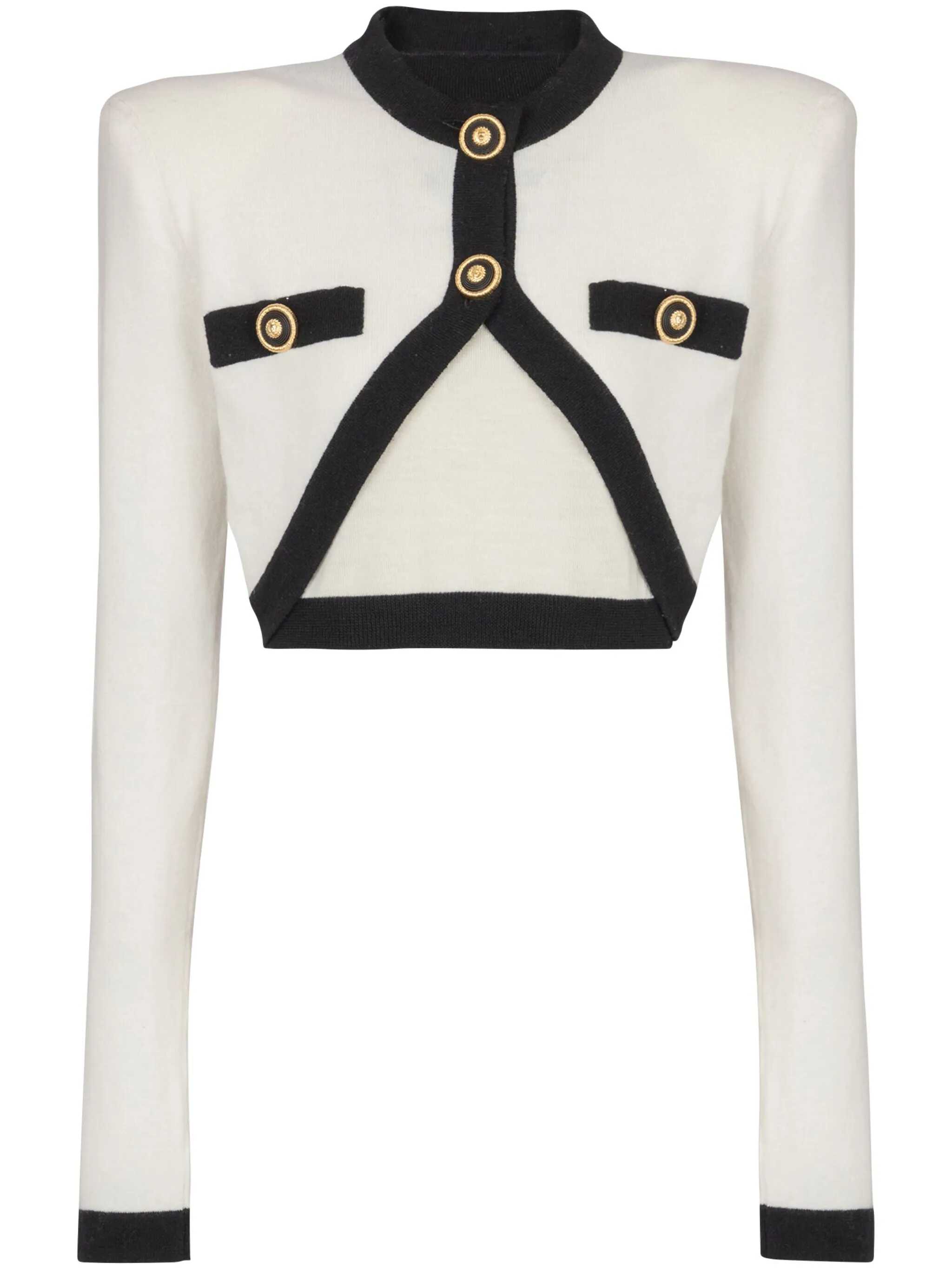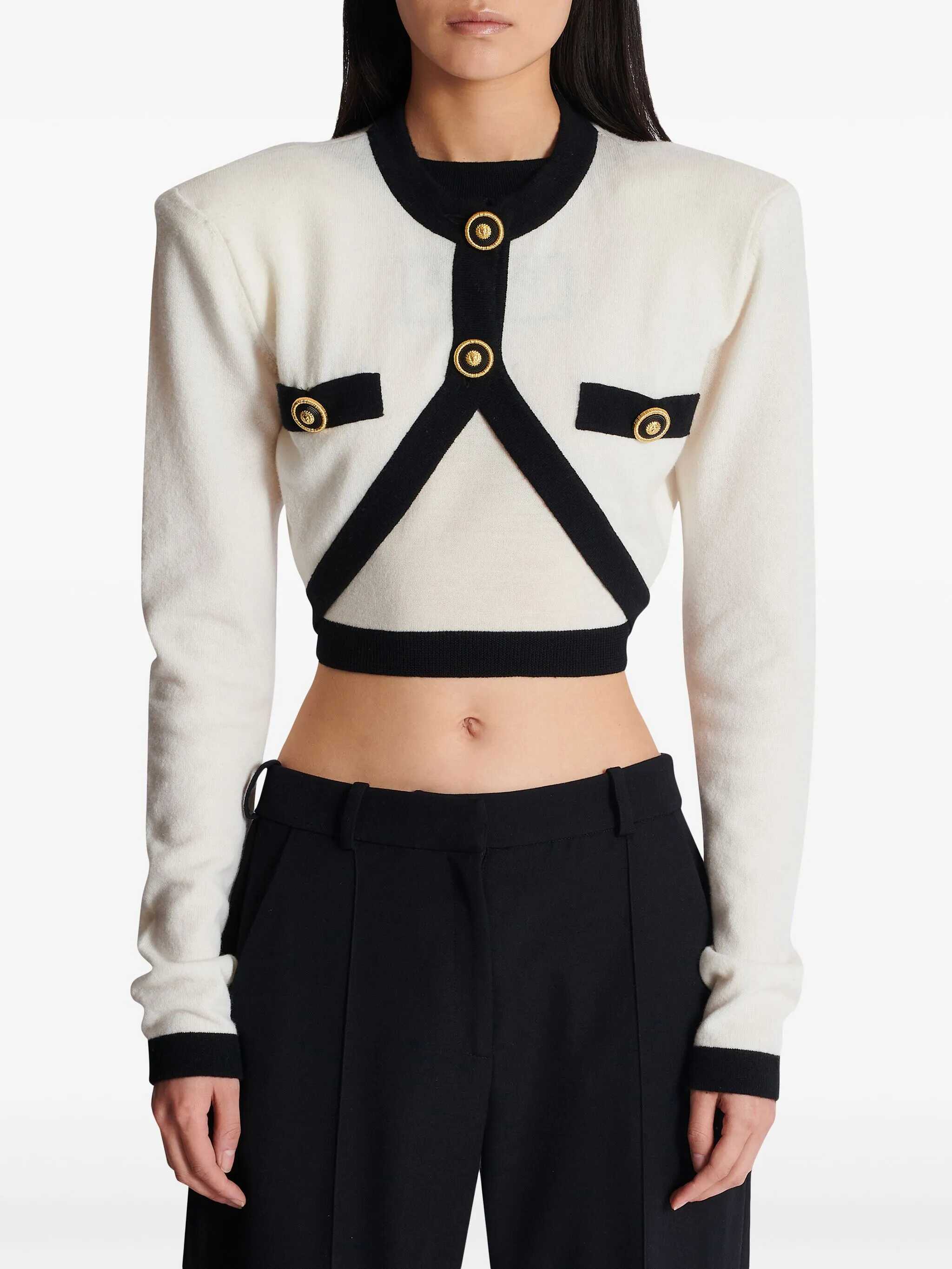 Wool and cashmere blend sweater with trompe l'oeil details and 'Filo Leone Catena' buttons, layered cardigan, crew neck, padded shoulders, long sleeves