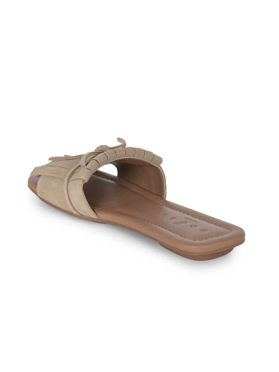 Hogan slippers made of Fango leather. Tan-colored leather interior with engraved logo. Suede upper band with tone-on-tone fringes. Silver logo "H" pendant on the band.