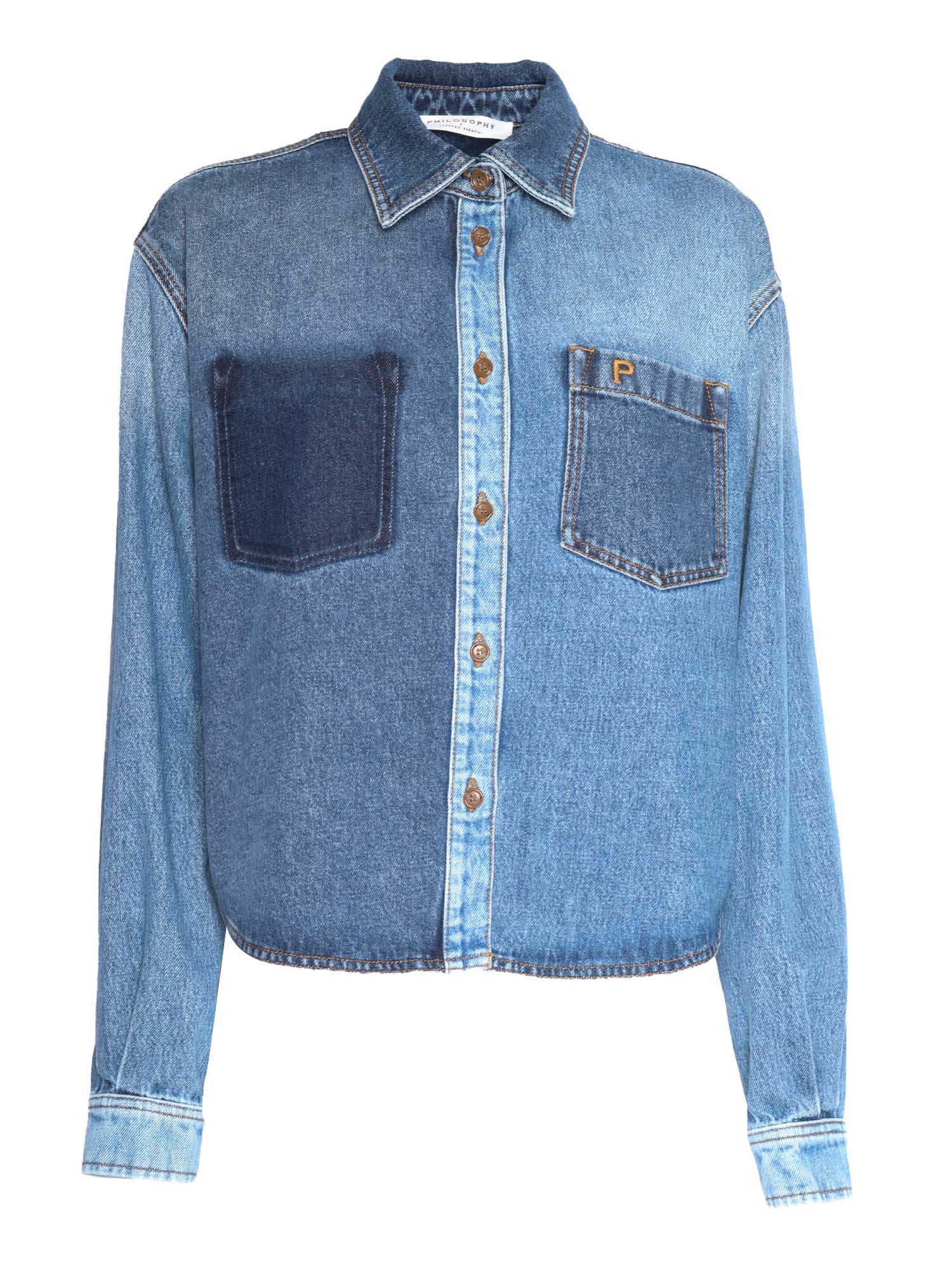 Blue shirt in 100% cotton Philosophy by Lorenzo Serafini, with a modern cut and well -kept details. Perfect for those looking for a sober but quality garment, to be brought with denim or with tailored trousers for an urban chic look.