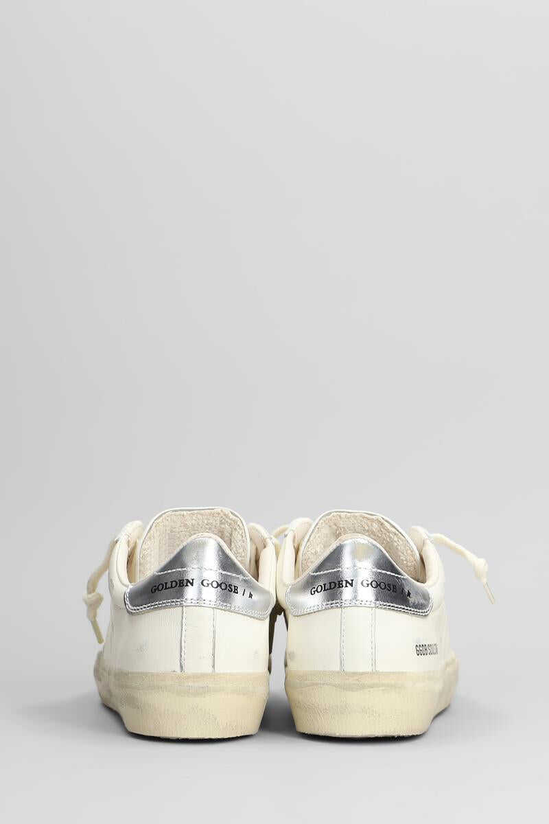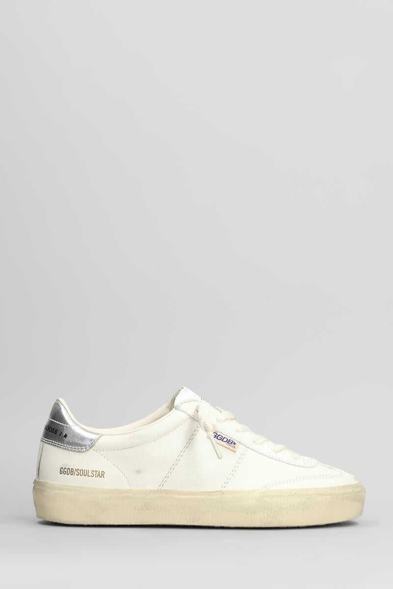 Soul Star Sneakers in white leather, laces, round toe, patch logo on tongue, logo label, logo on heel, used effect, rubber outsole, 100% leather, Made in Italy