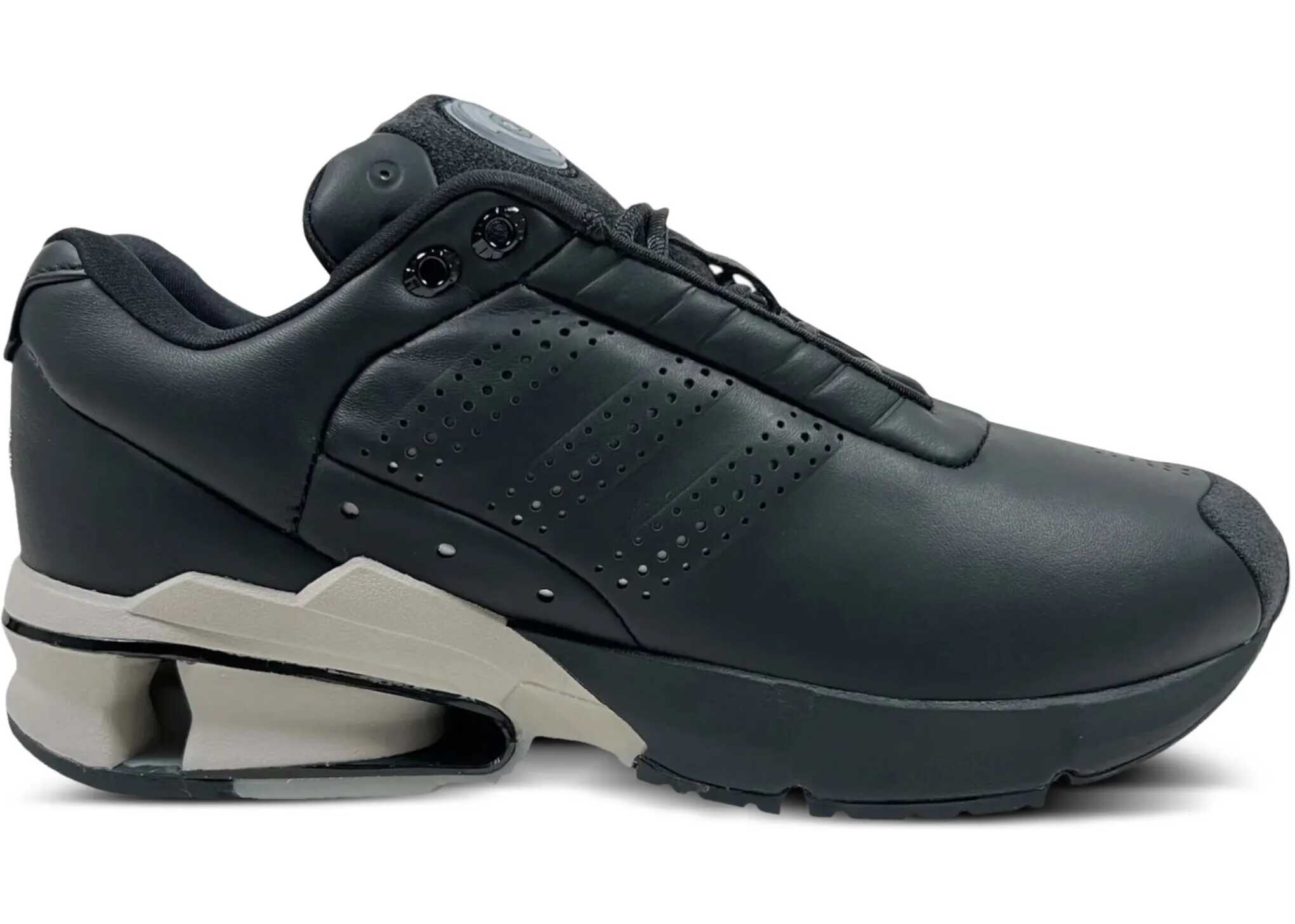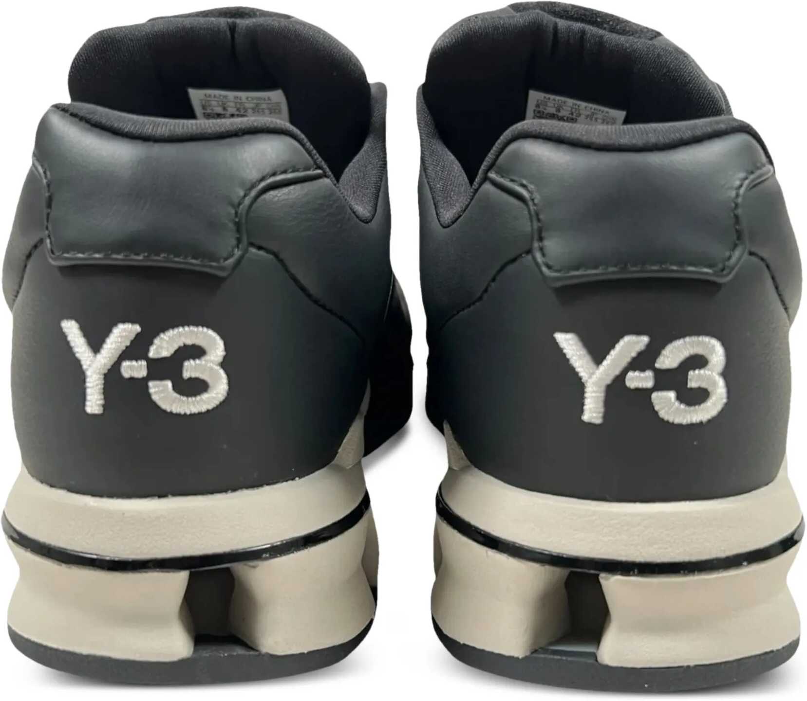A3 Control sneakers in smooth and suede black leather. They feature a round toe with a suede leather insert, lace-up closure, three perforated stripes on the sides, a black suede tongue with a rubber A3 logo, a white embroidered Y-3 logo on the heel, and a black and white rubber sole. Additional laces included. Any imperfections in the leather should not be considered manufacturing defects but rather a characteristic of the material.