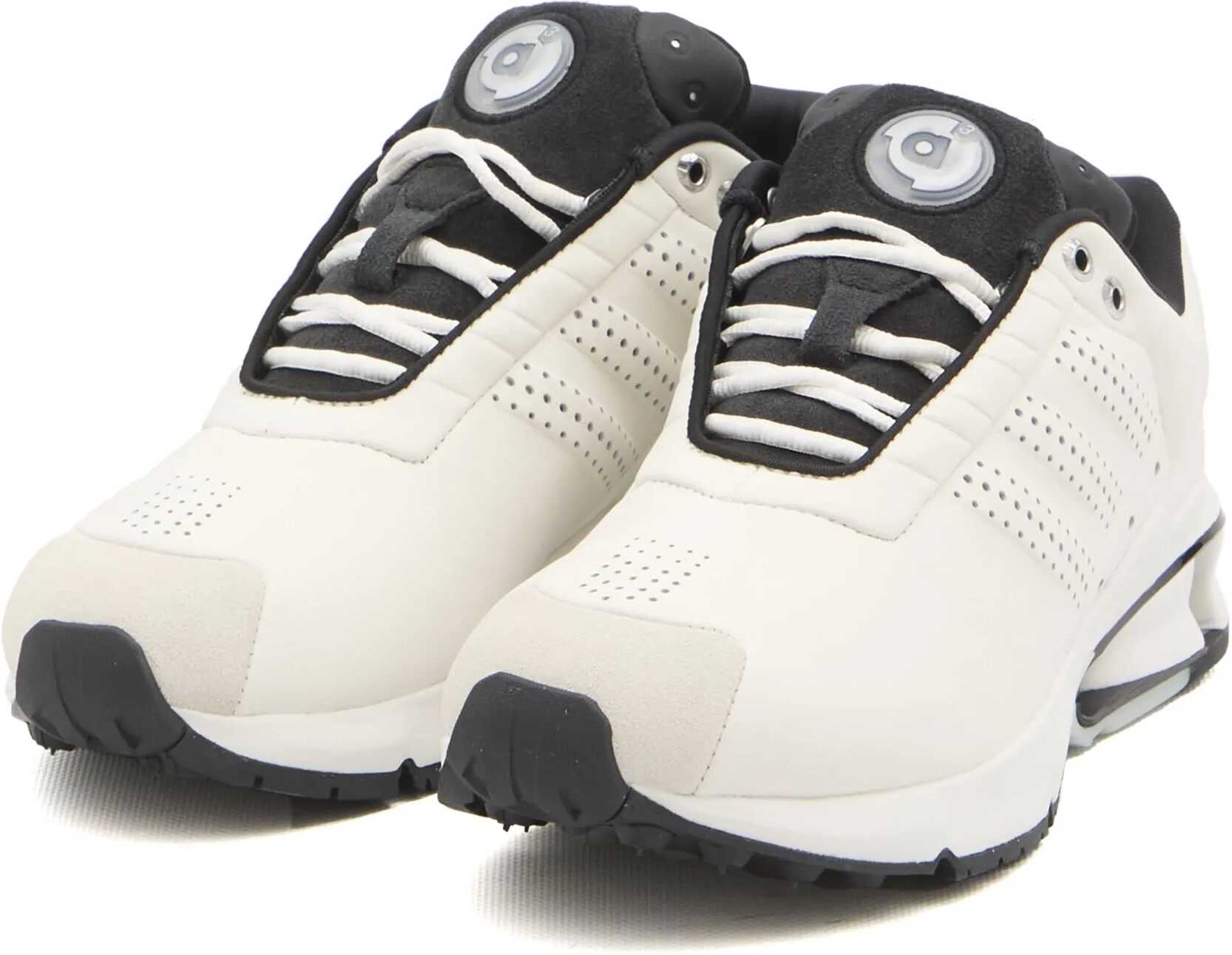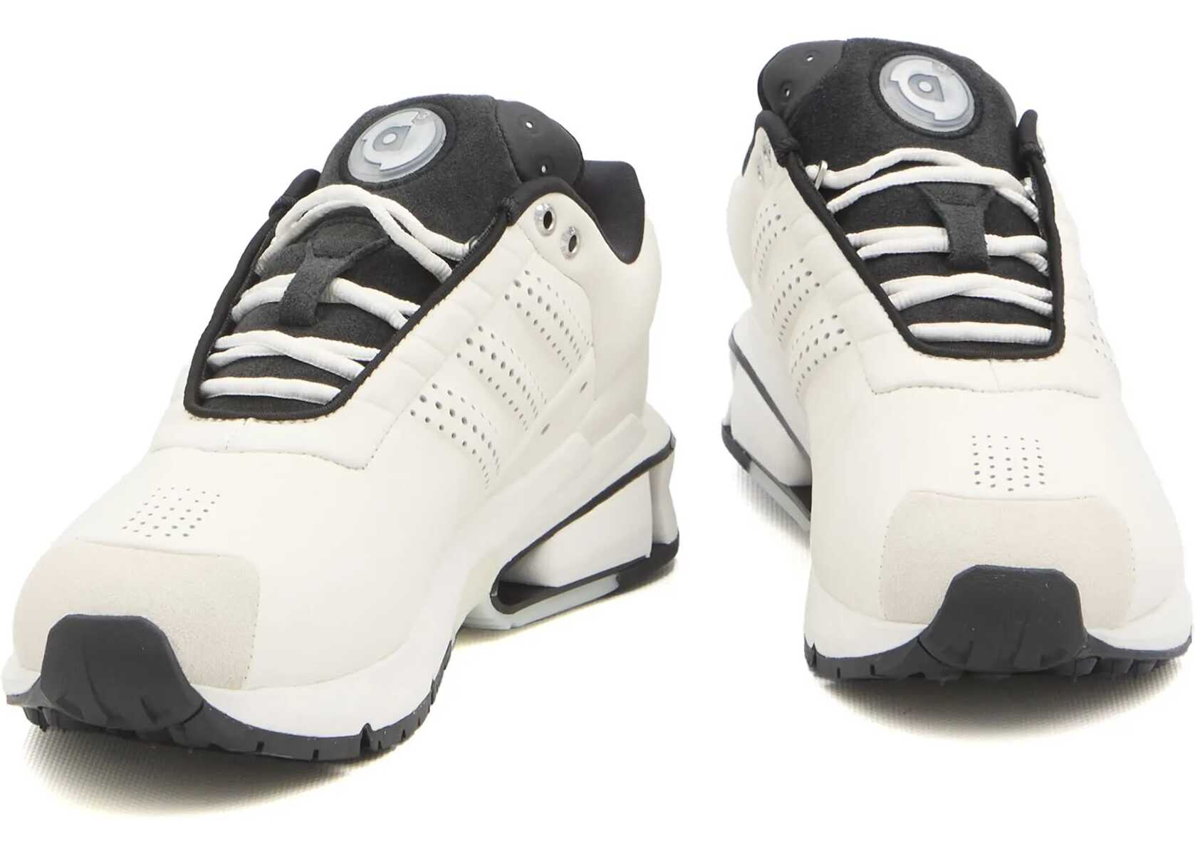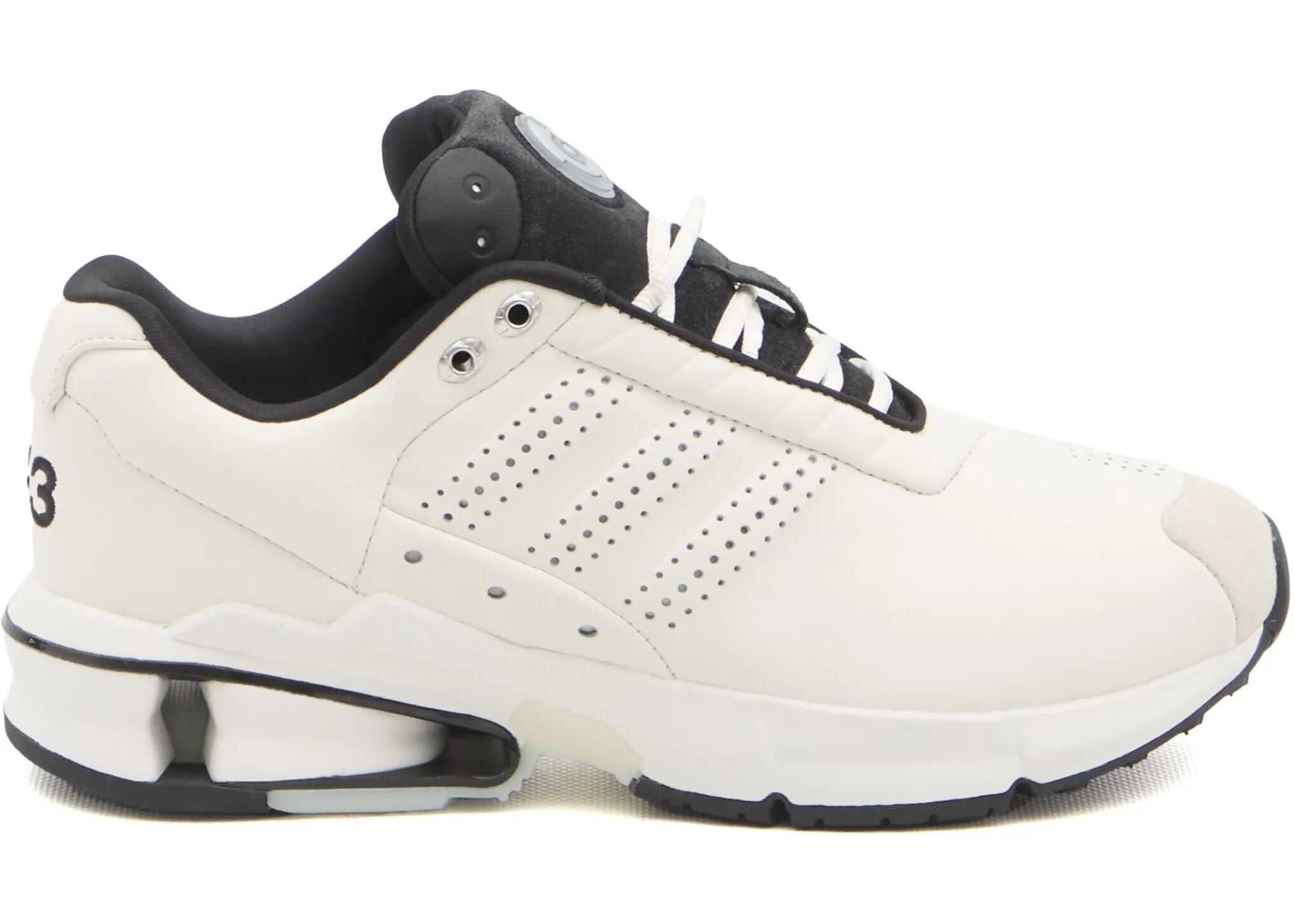 A3 Control sneakers in smooth and suede white and black leather. They feature a round toe with a white suede leather insert, lace-up closure, three perforated stripes on the sides, a black suede tongue with a rubber A3 logo, a black embroidered Y-3 logo on the heel, and a white rubber sole. Additional laces included. Any imperfections in the leather should not be considered manufacturing defects but rather a characteristic of the material.