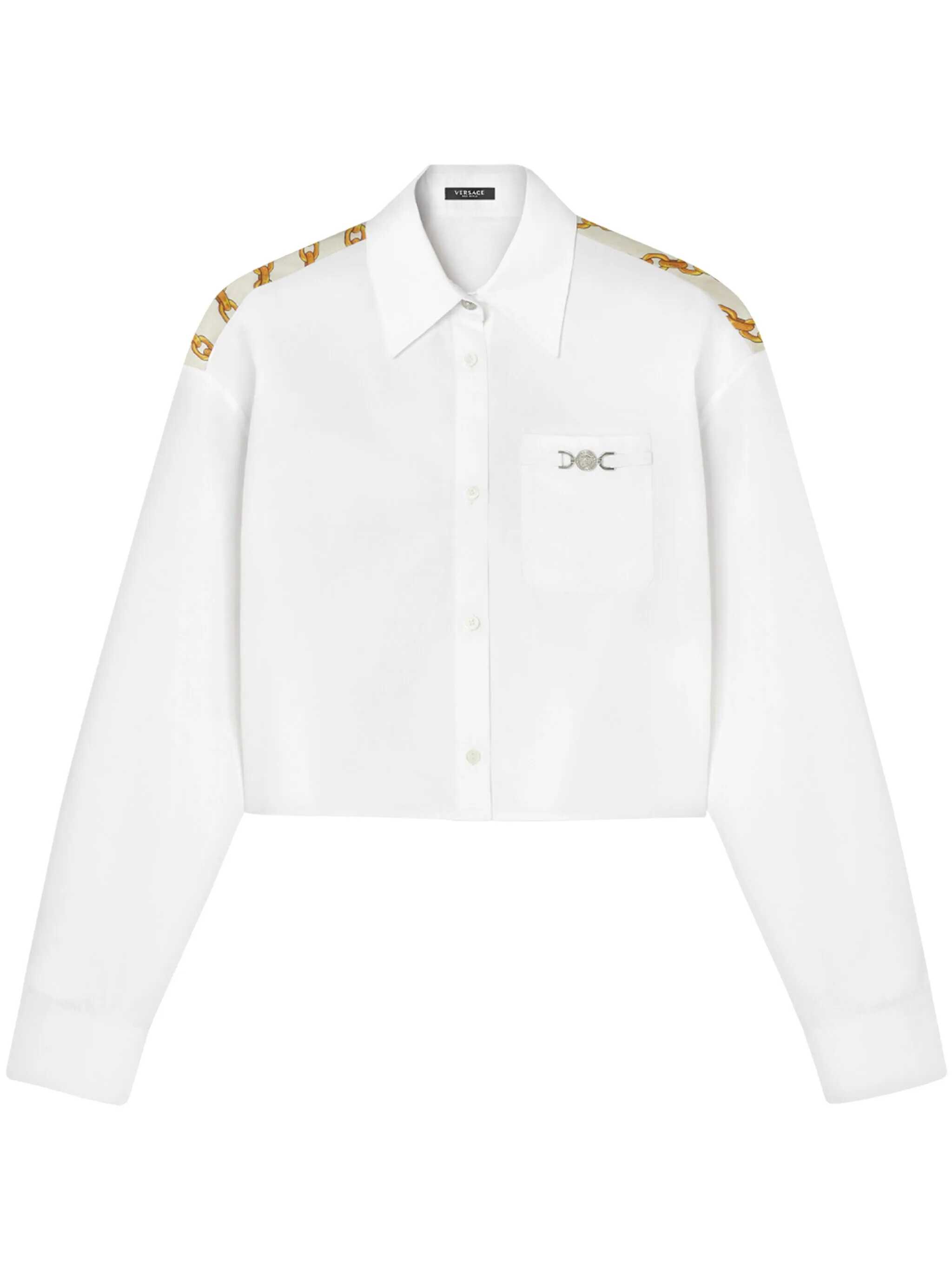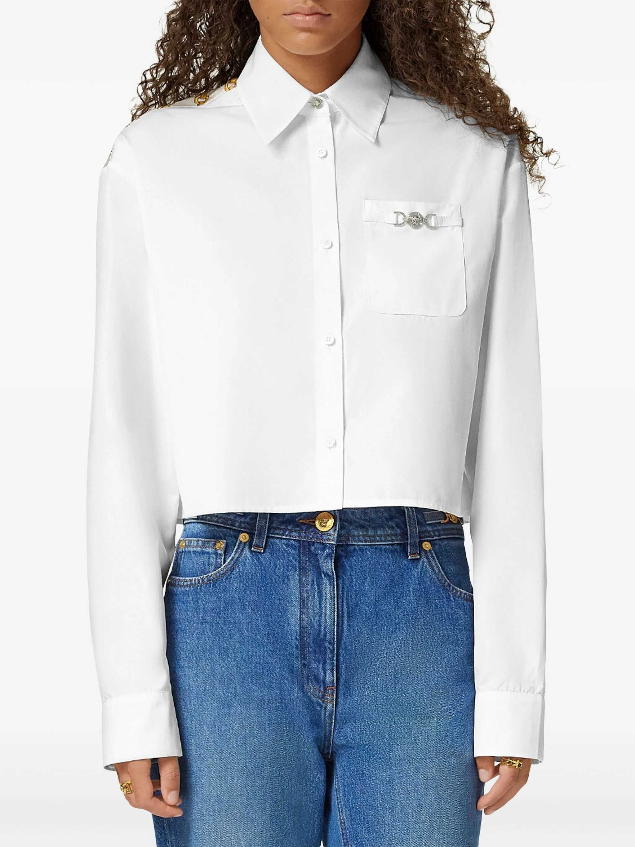 White cotton shirt from Versace featuring long sleeves, shirt collar, pocket and regular vestibility.