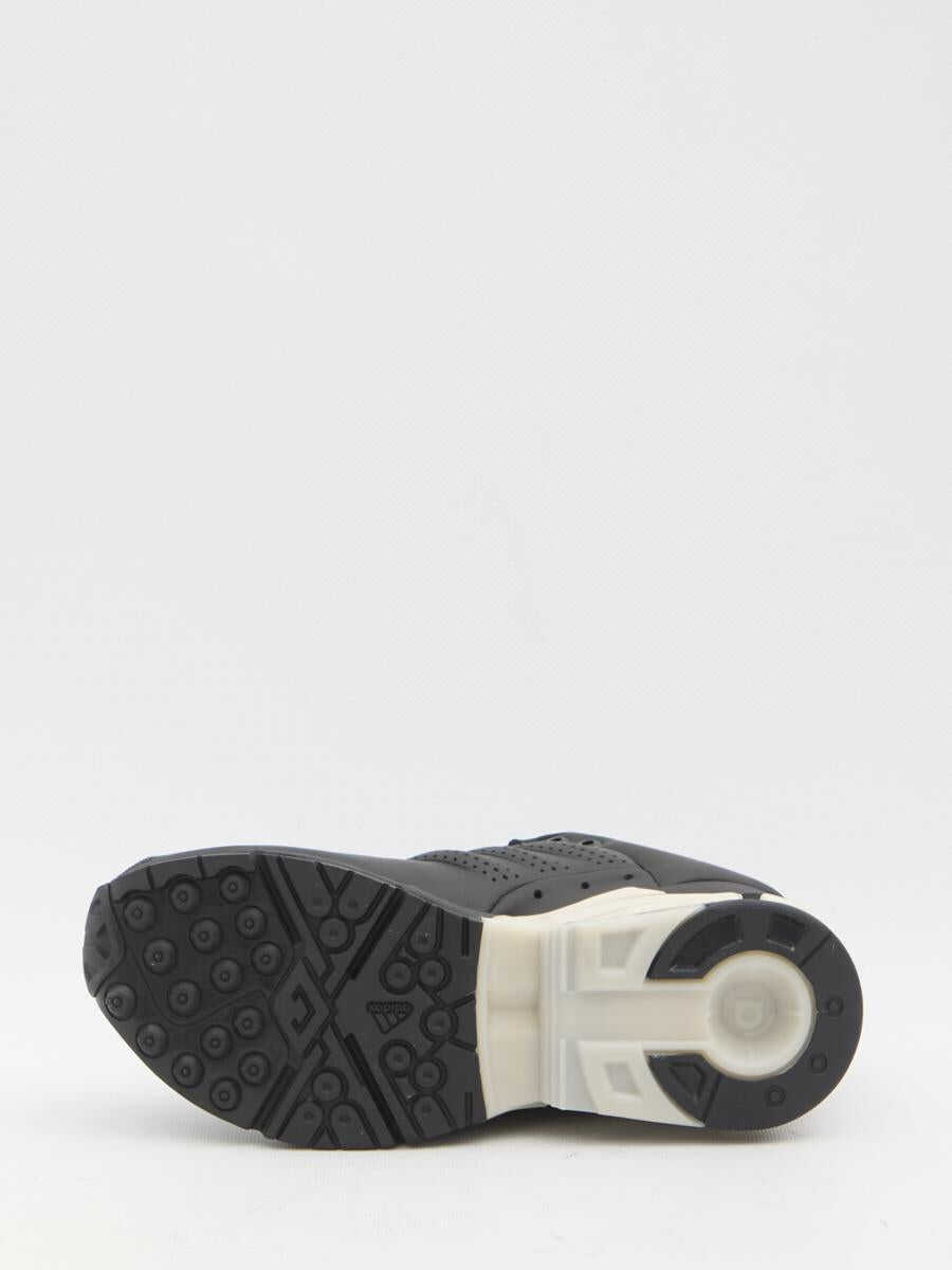 A3 Control sneakers in smooth and suede black leather. They feature a round toe with a suede leather insert, lace-up closure, three perforated stripes on the sides, a black suede tongue with a rubber A3 logo, a white embroidered Y-3 logo on the heel, and a black and white rubber sole. Additional laces included. Any imperfections in the leather should not be considered manufacturing defects but rather a characteristic of the material.