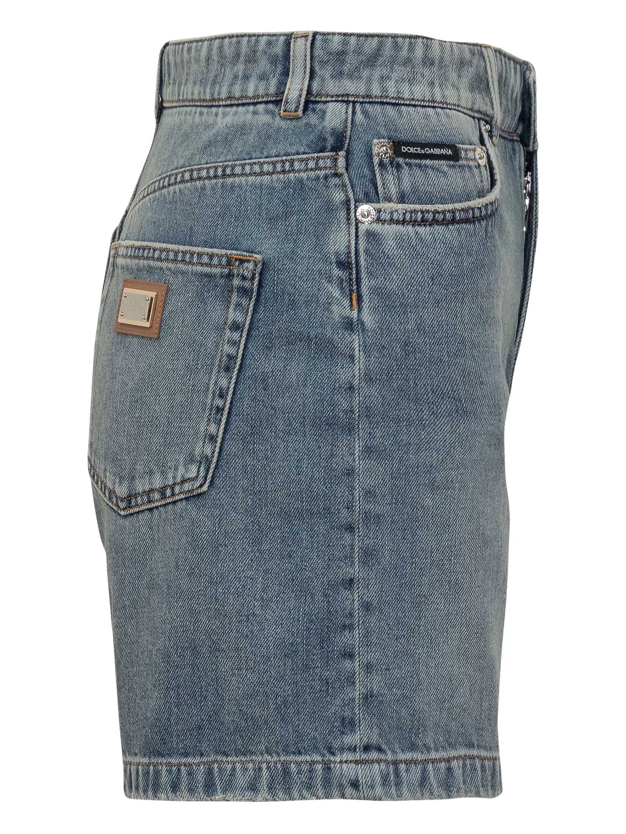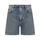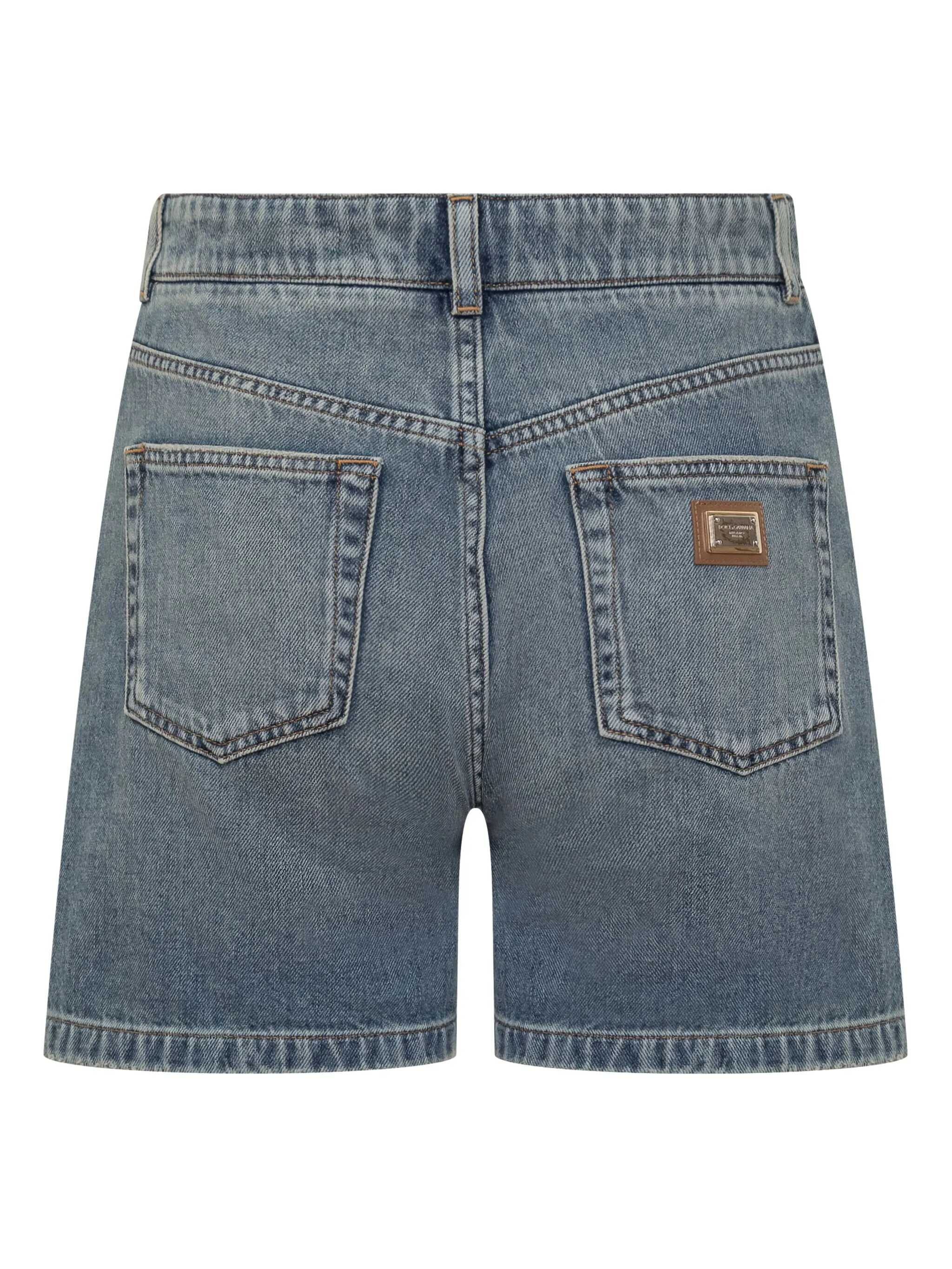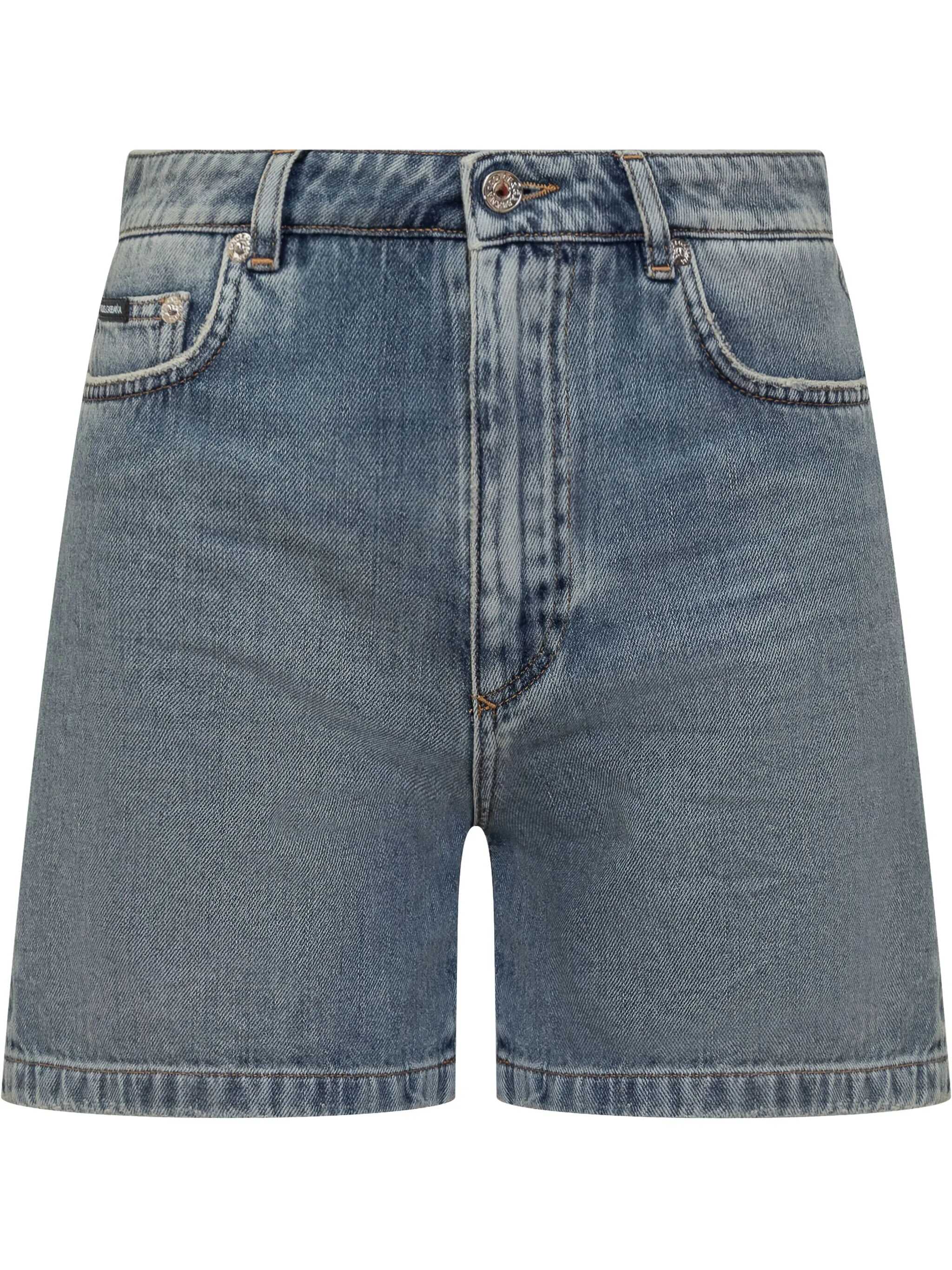 Used-effect delavé cotton denim shorts, back metal logo, five pockets, zip and button closure