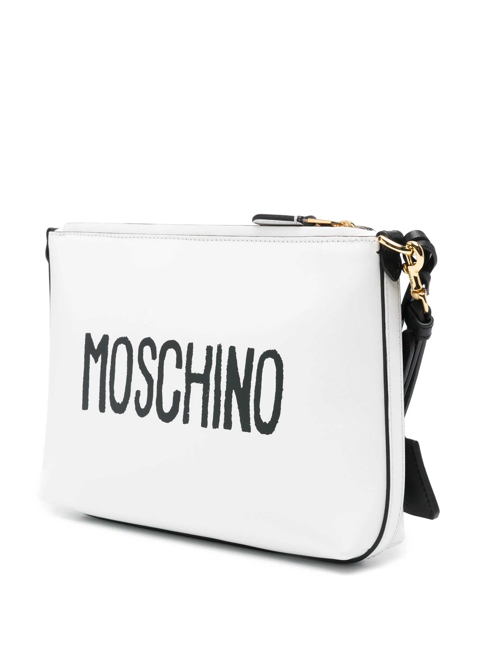 'Bustina' leather clutch bag with front logo print, zip closure, leather handle with adjustable buckle