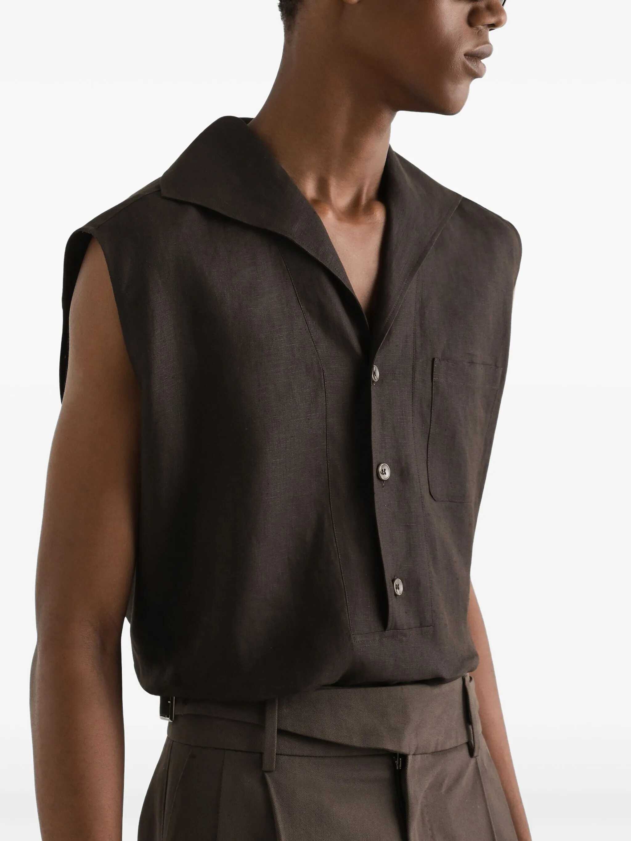 Brown linen polo shirt