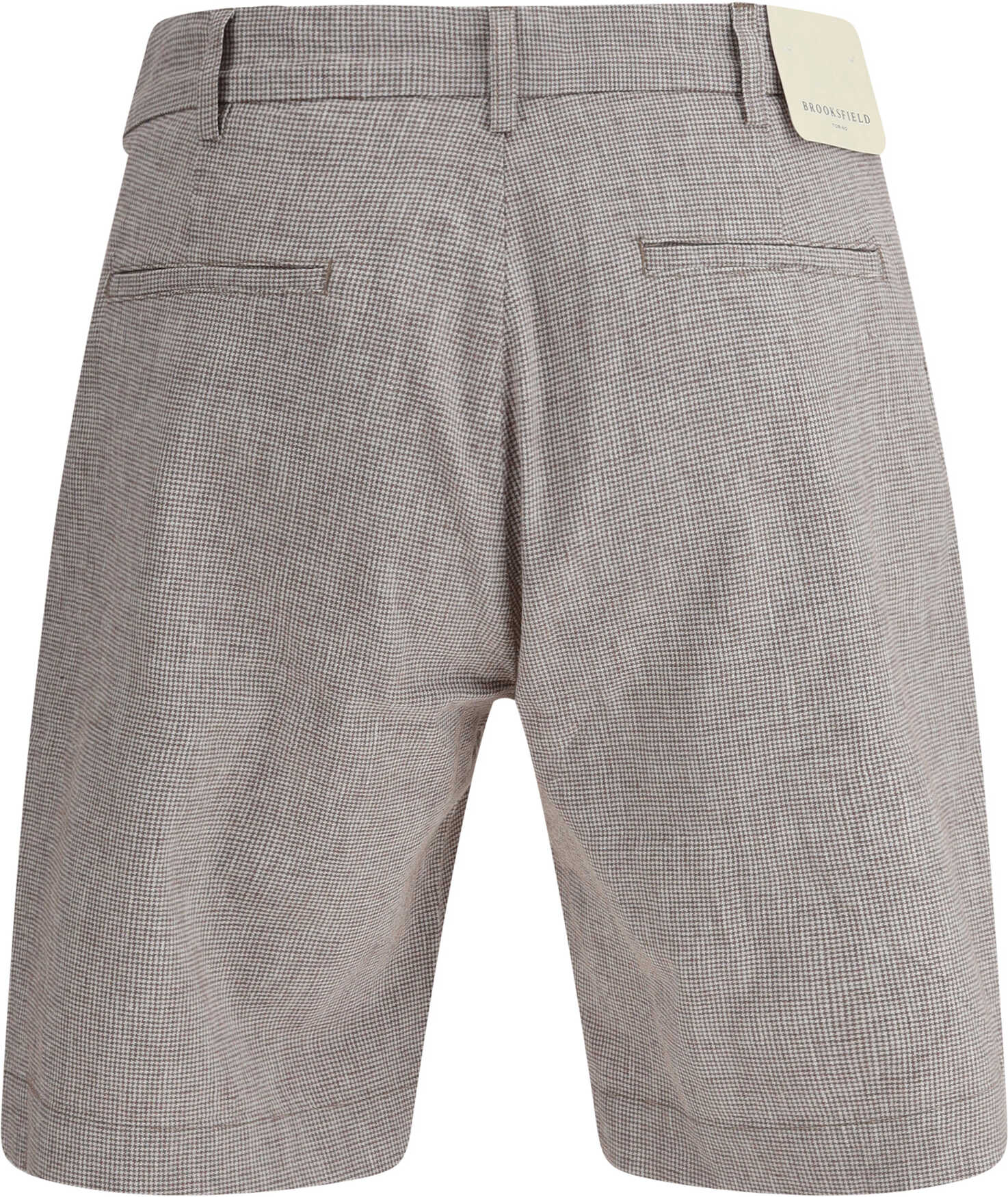 Brooksfield's linen shorts feature a button and zipper front closure with an adjustable drawstring that allows for a customizable fit. They feature two side welt pockets, which add functionality to the design. The linen and check pattern give a fresh, lightweight look that is ideal for casual and sophisticated summer looks.
