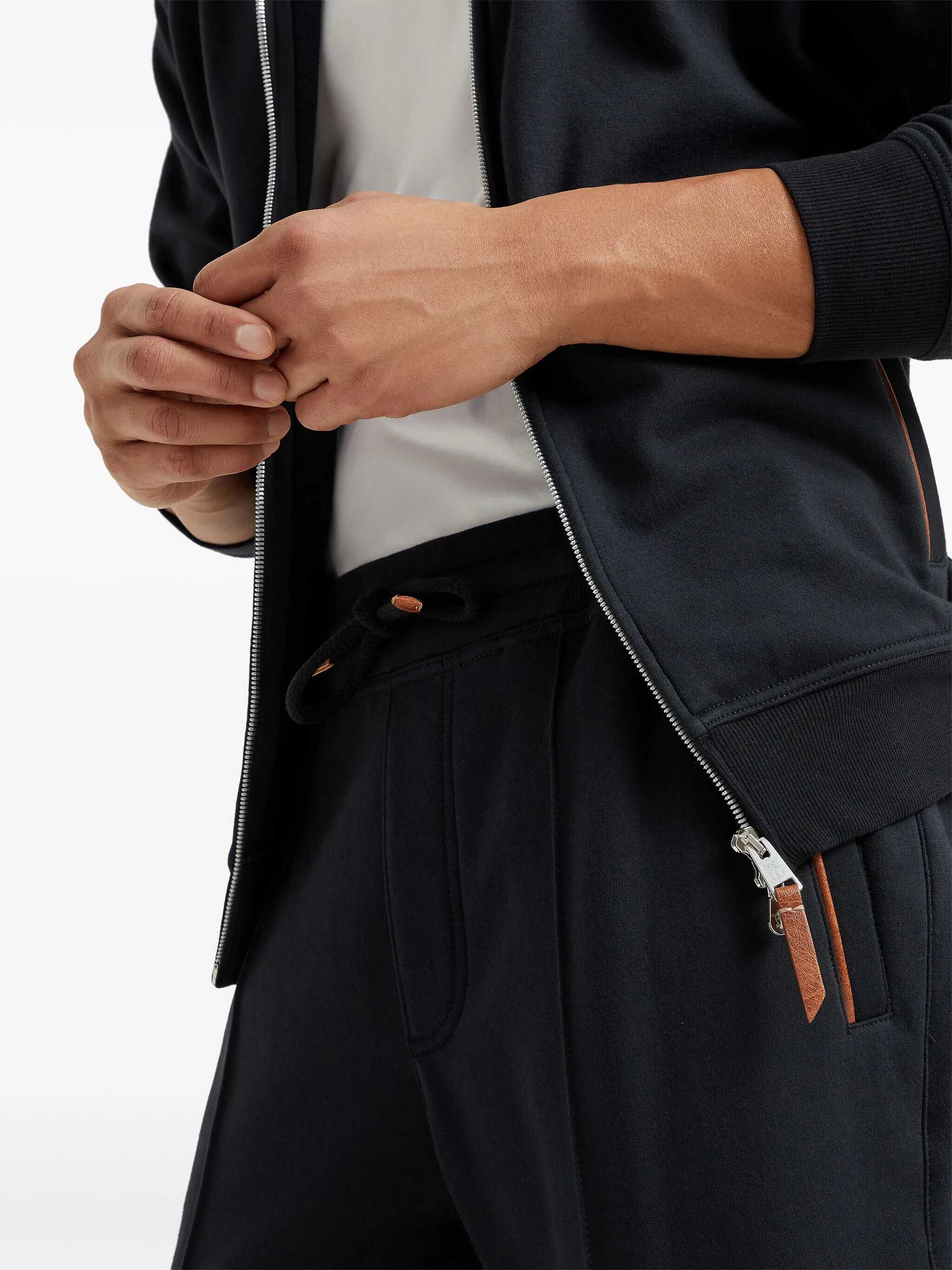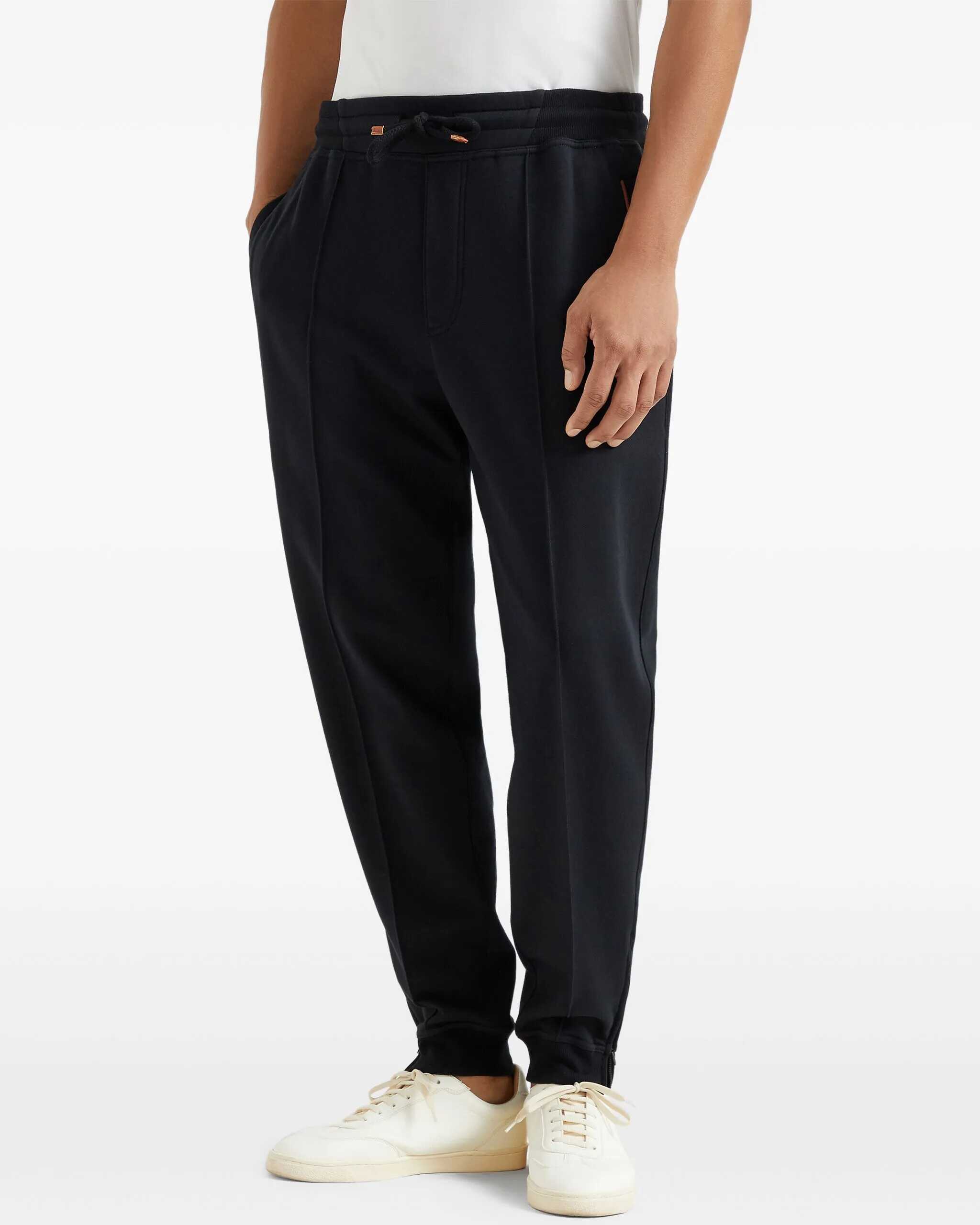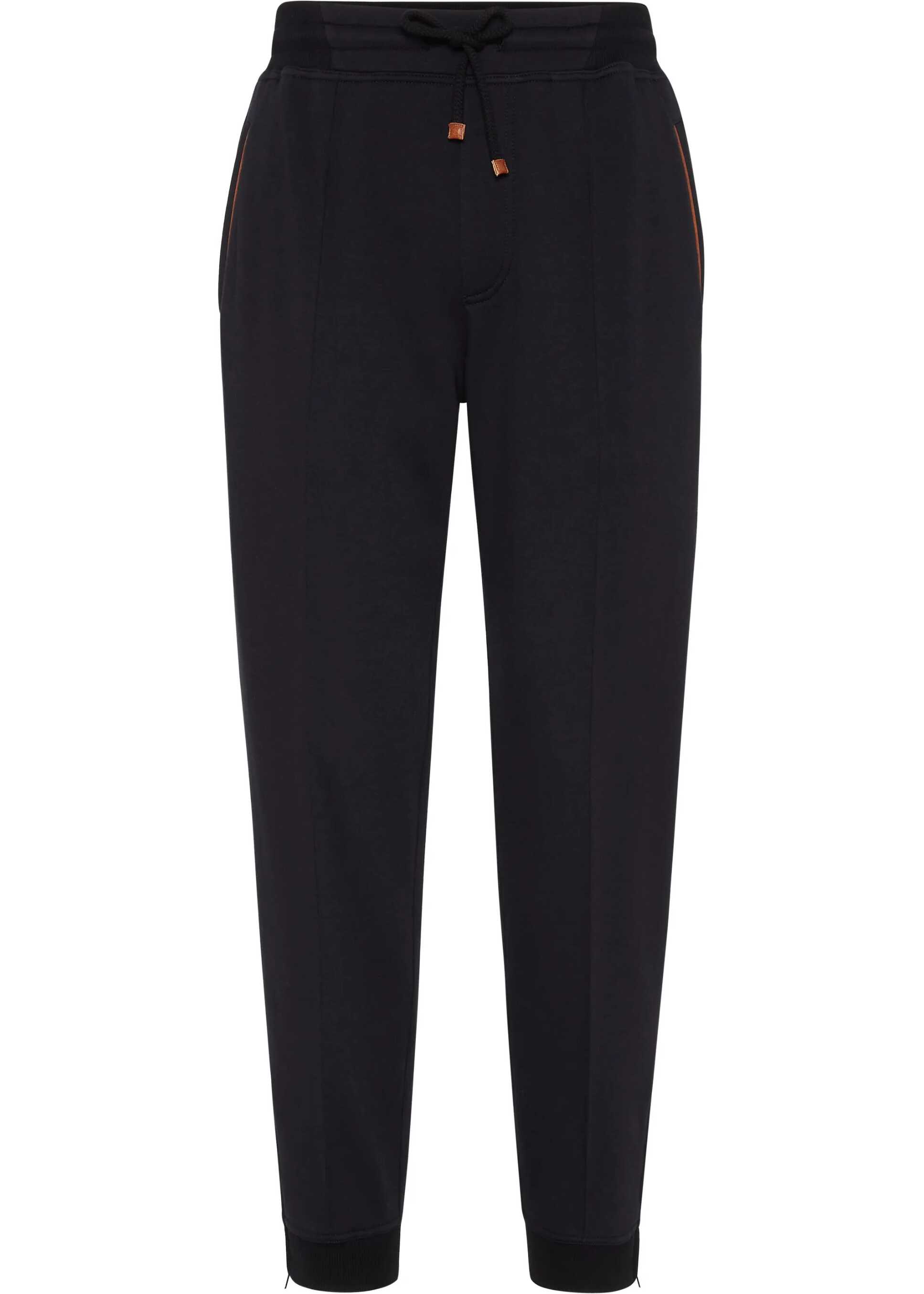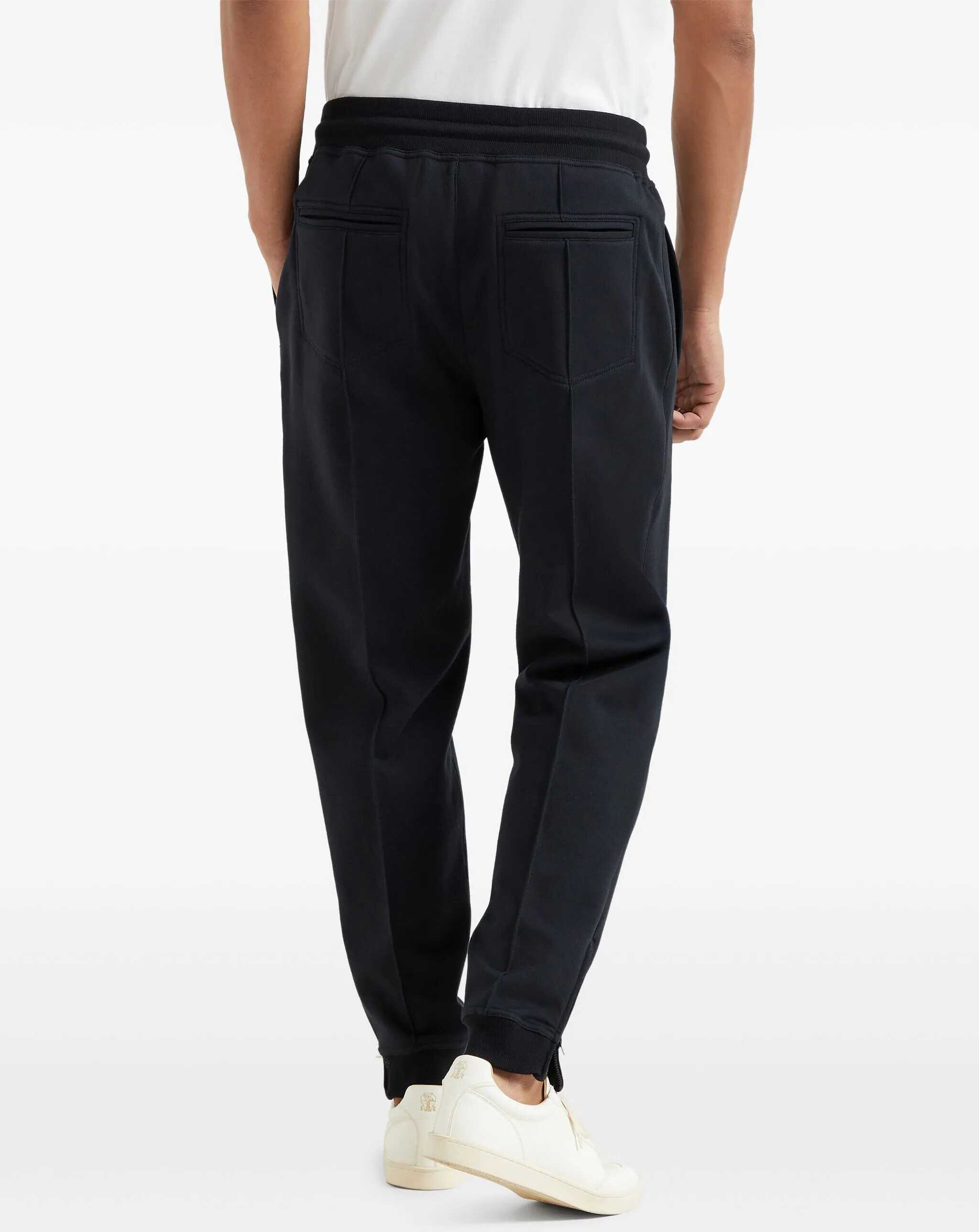Brunello Cucinelli's cotton Sweatpants are a garment that combines elegance and comfort. The jogger style features an elasticized waistband with drawstring, allowing for a customized fit. They feature two side welt pockets and two back pockets, offering practicality and functionality. The zippered adjustable hem allows the length to be adjusted according to personal preference. These pants are an ideal choice for those seeking a casual-chic look, combining fine materials and contemporary design.