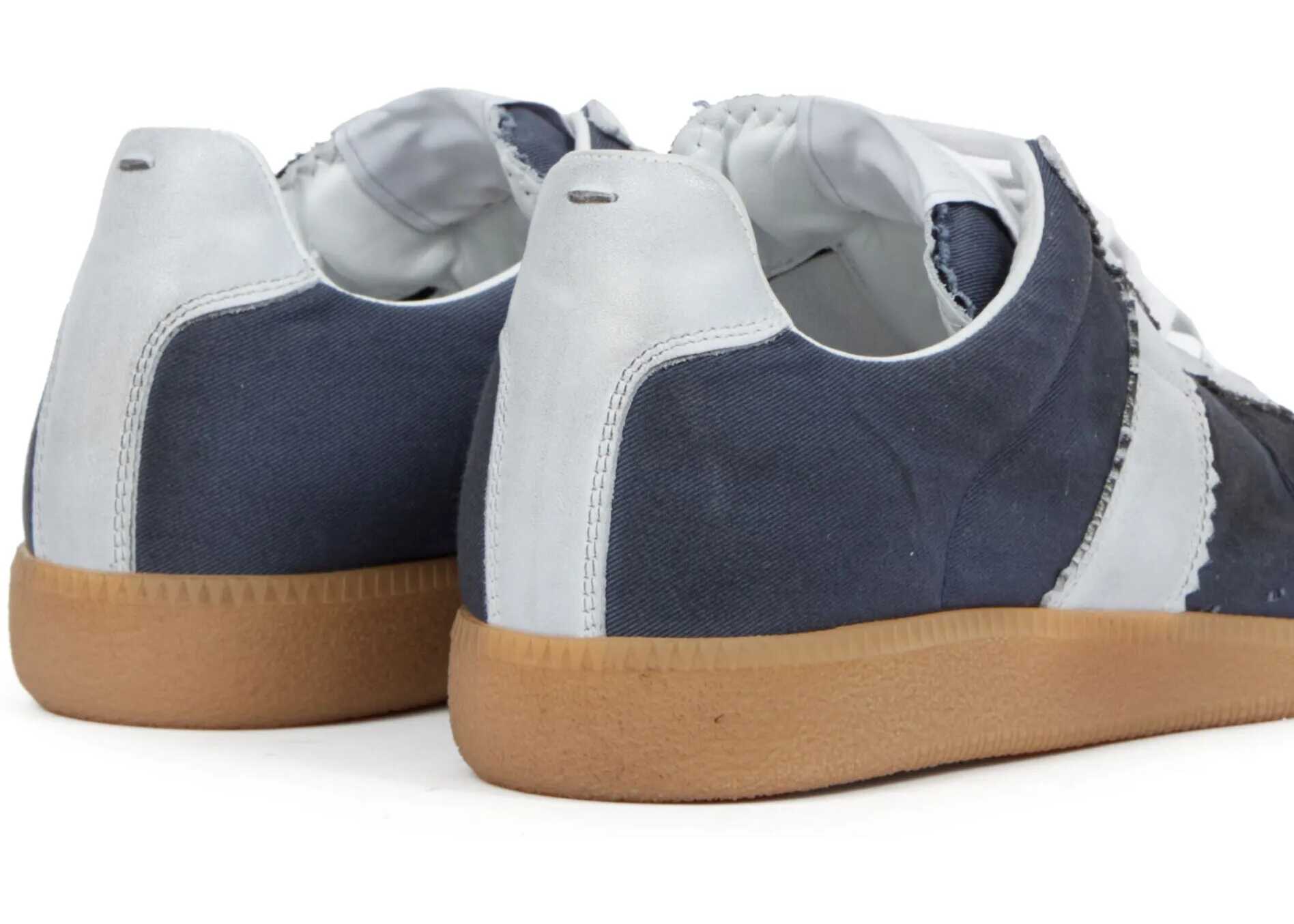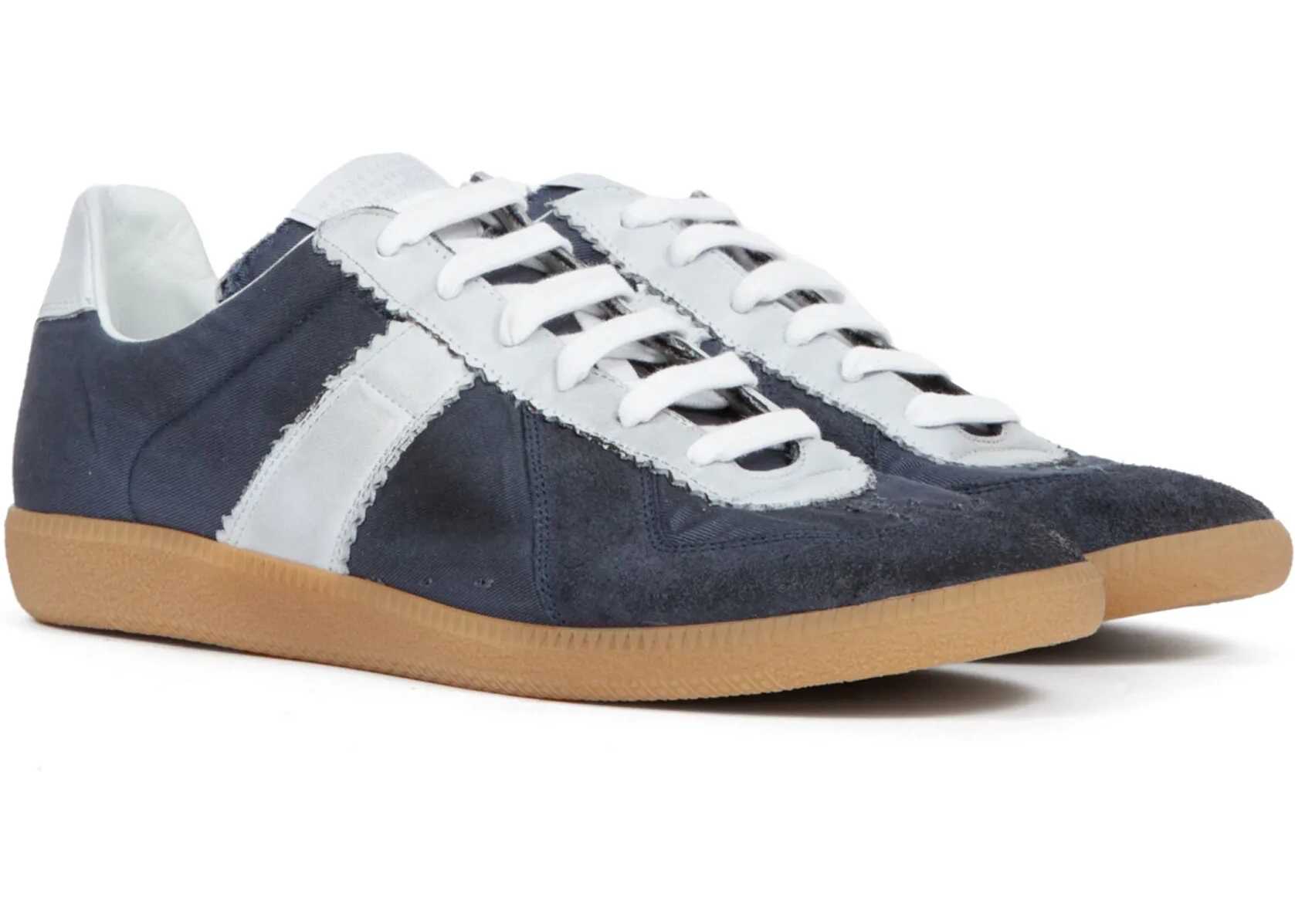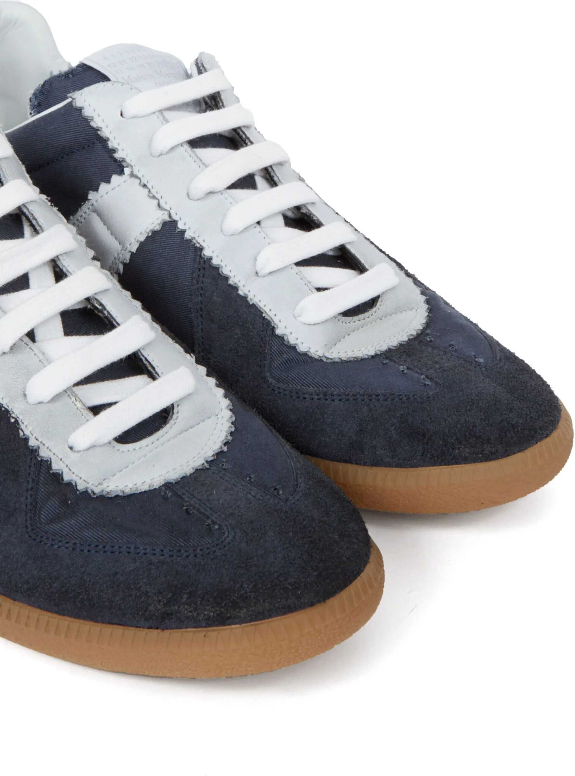 The Margiela Sneakers feature suede details on the round toe, adding a touch of elegance and texture to the design. The front lace-up closure allows for an adjustable fit, while the contrasting slanted band on the side panels provides a distinctive detail. The branded insole guarantees quality and comfort, while the flat sole ensures stability and practicality. A pair of modern and versatile sneakers, perfect for a casual yet sophisticated look.