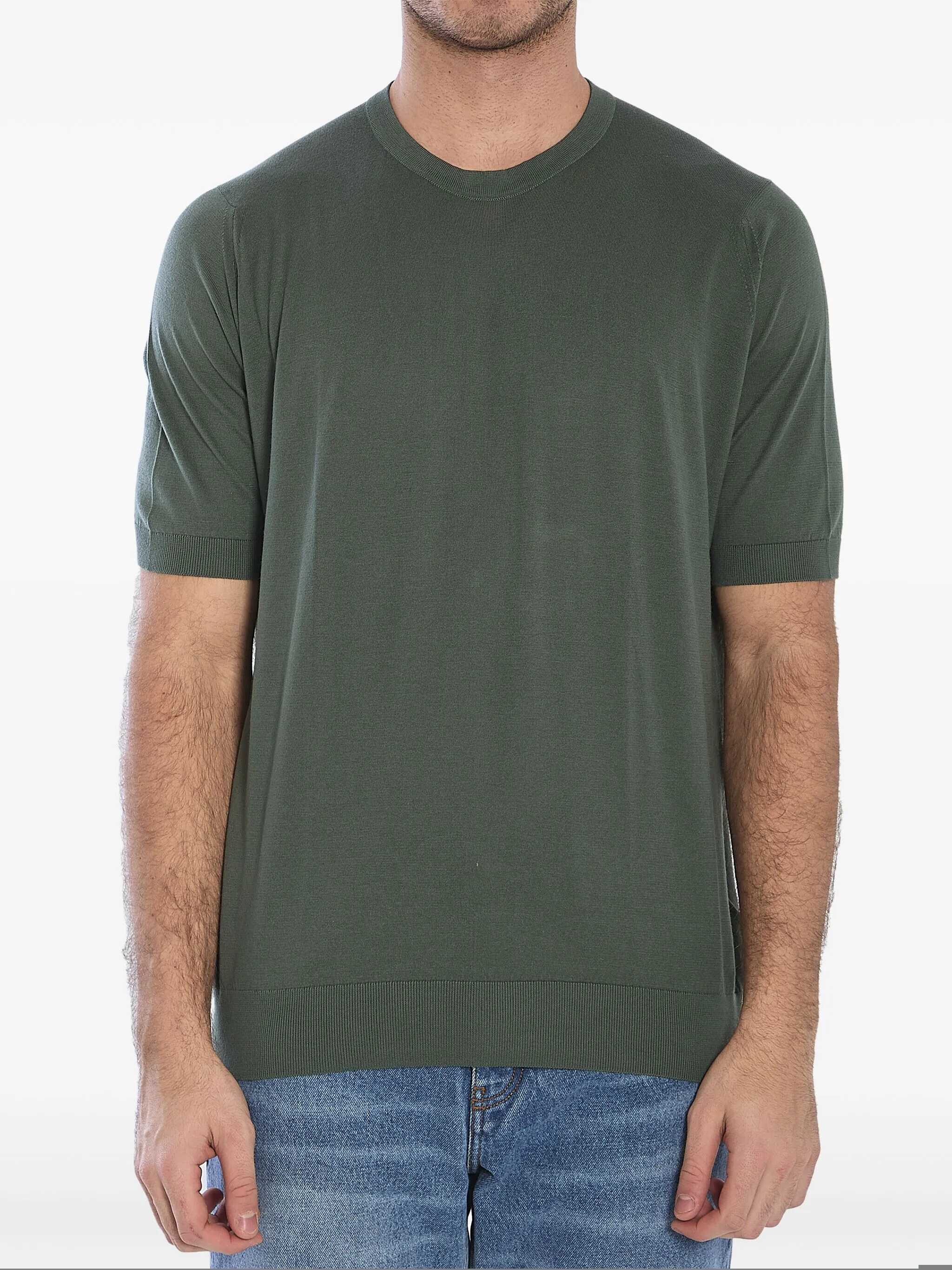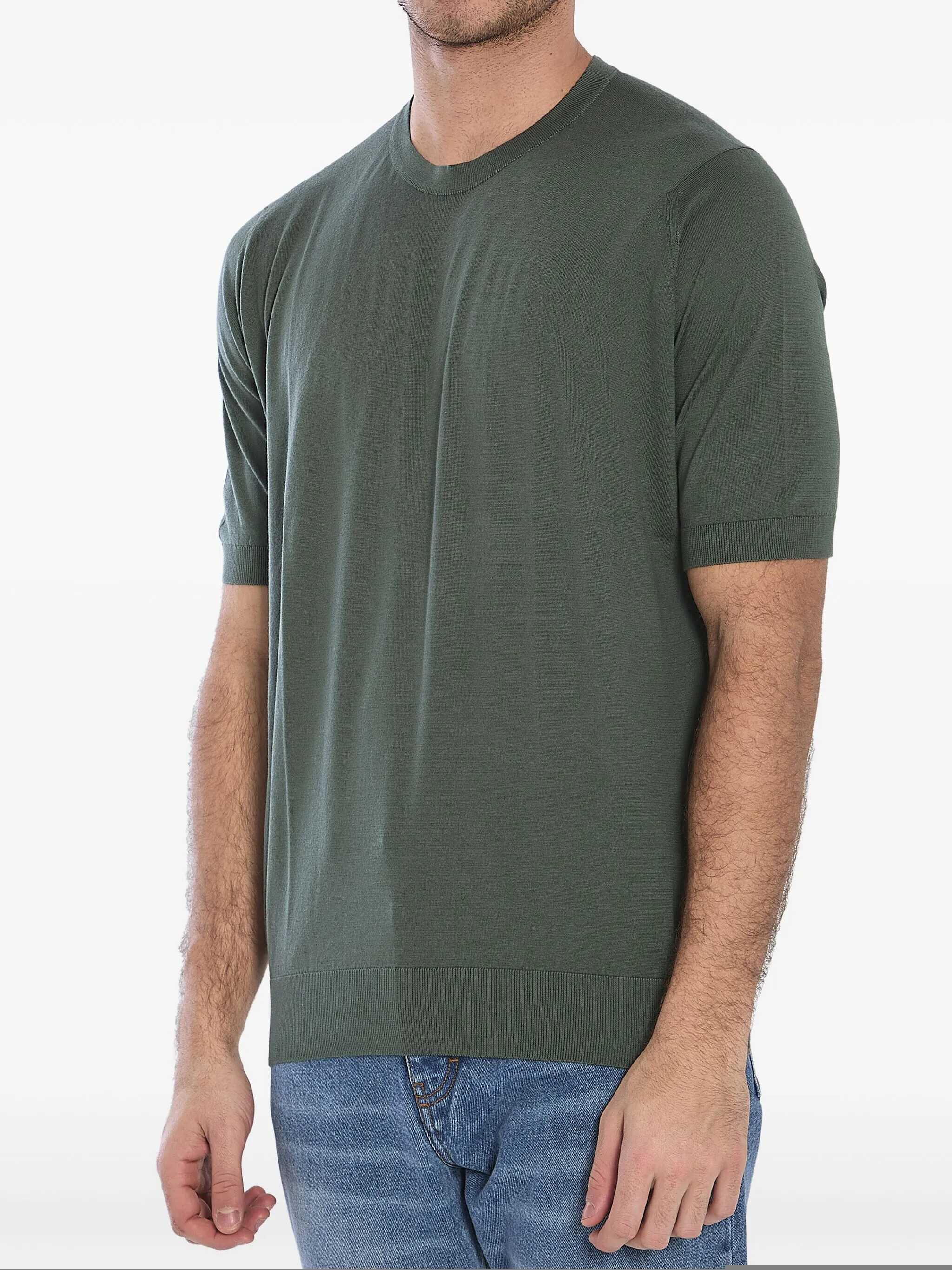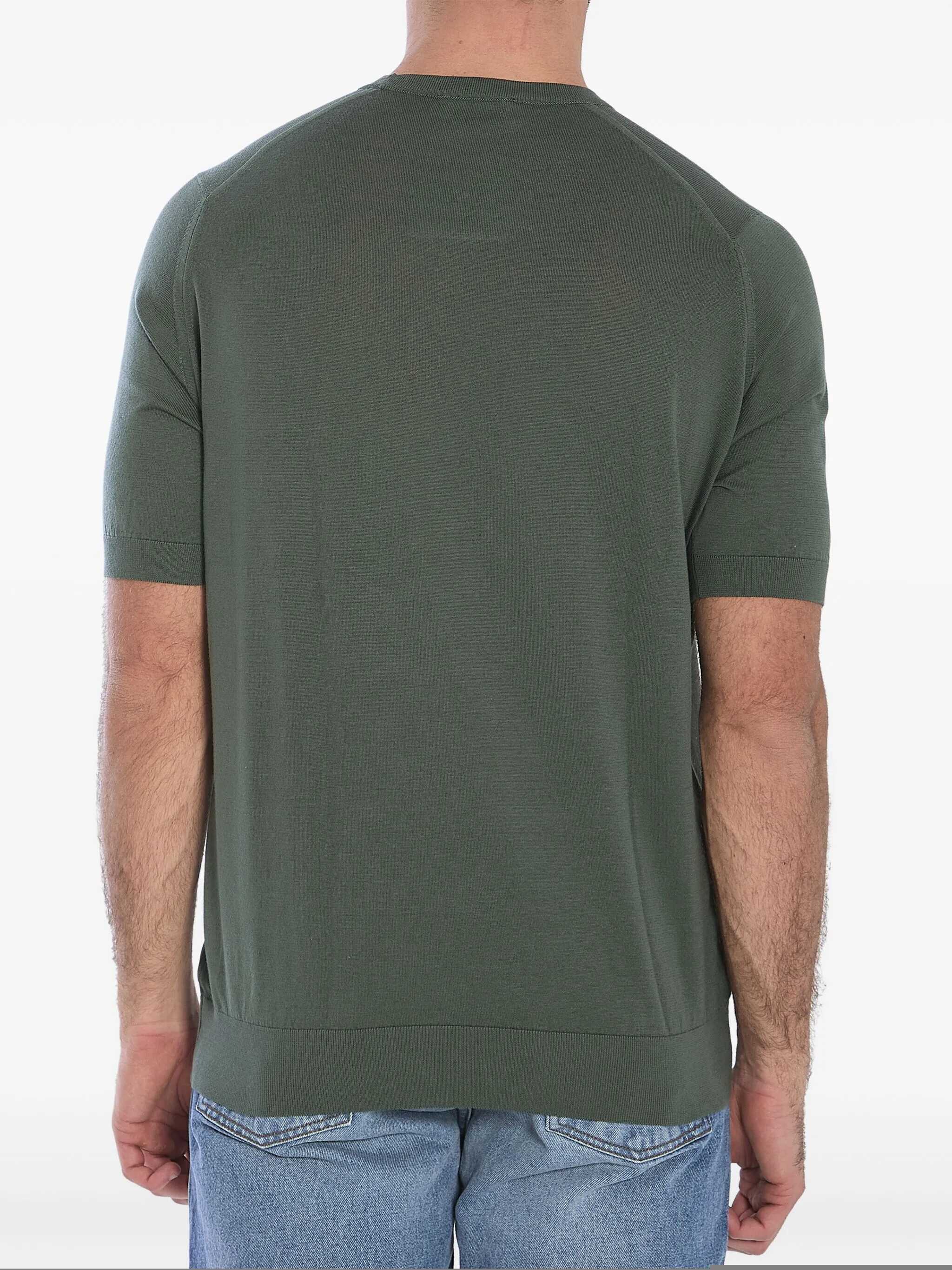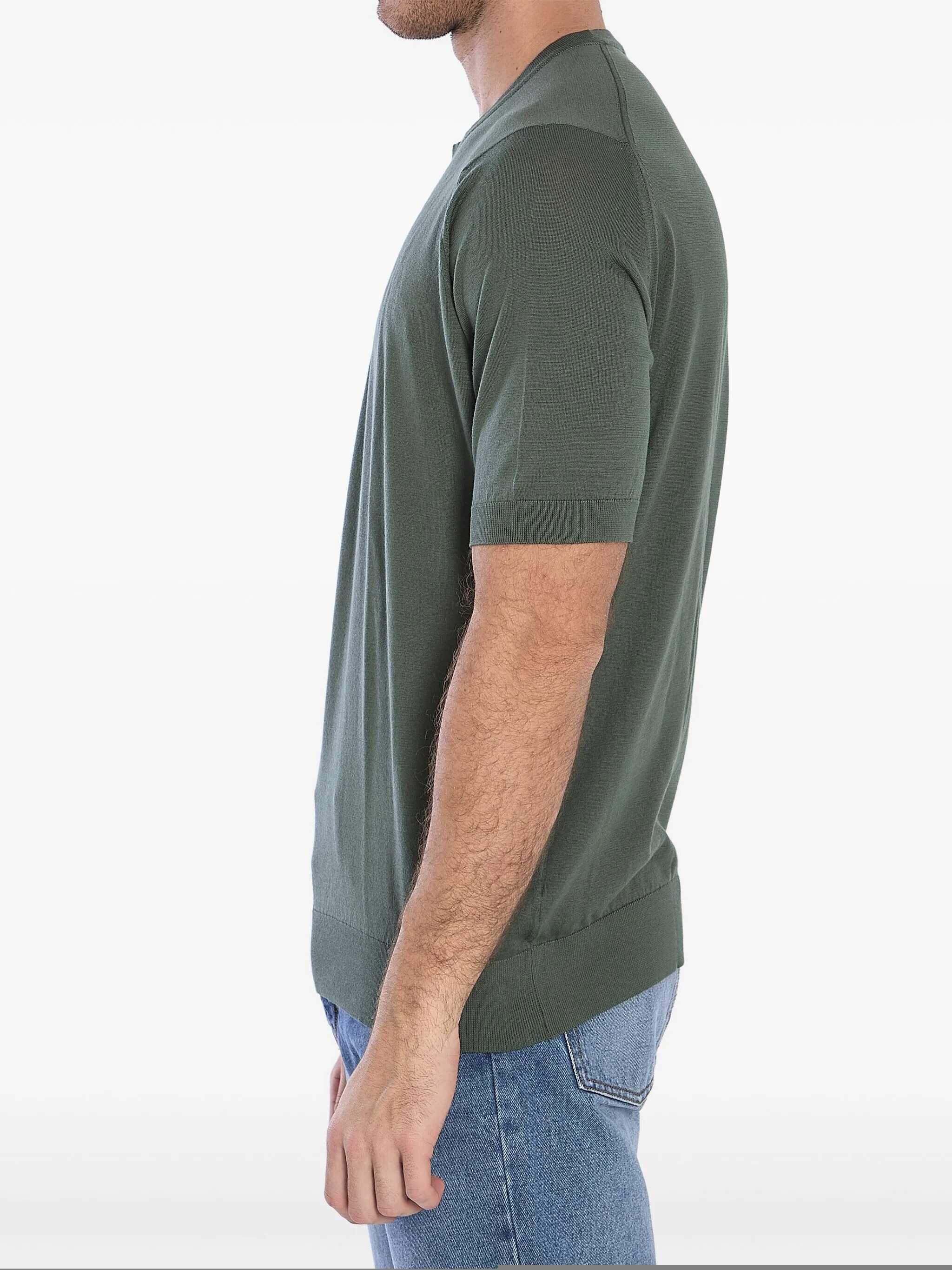 Short-sleeved crewneck Kempton t-shirt in soft military green Sea Island cotton. Ribbed collar, cuffs and hem. Regular fit.