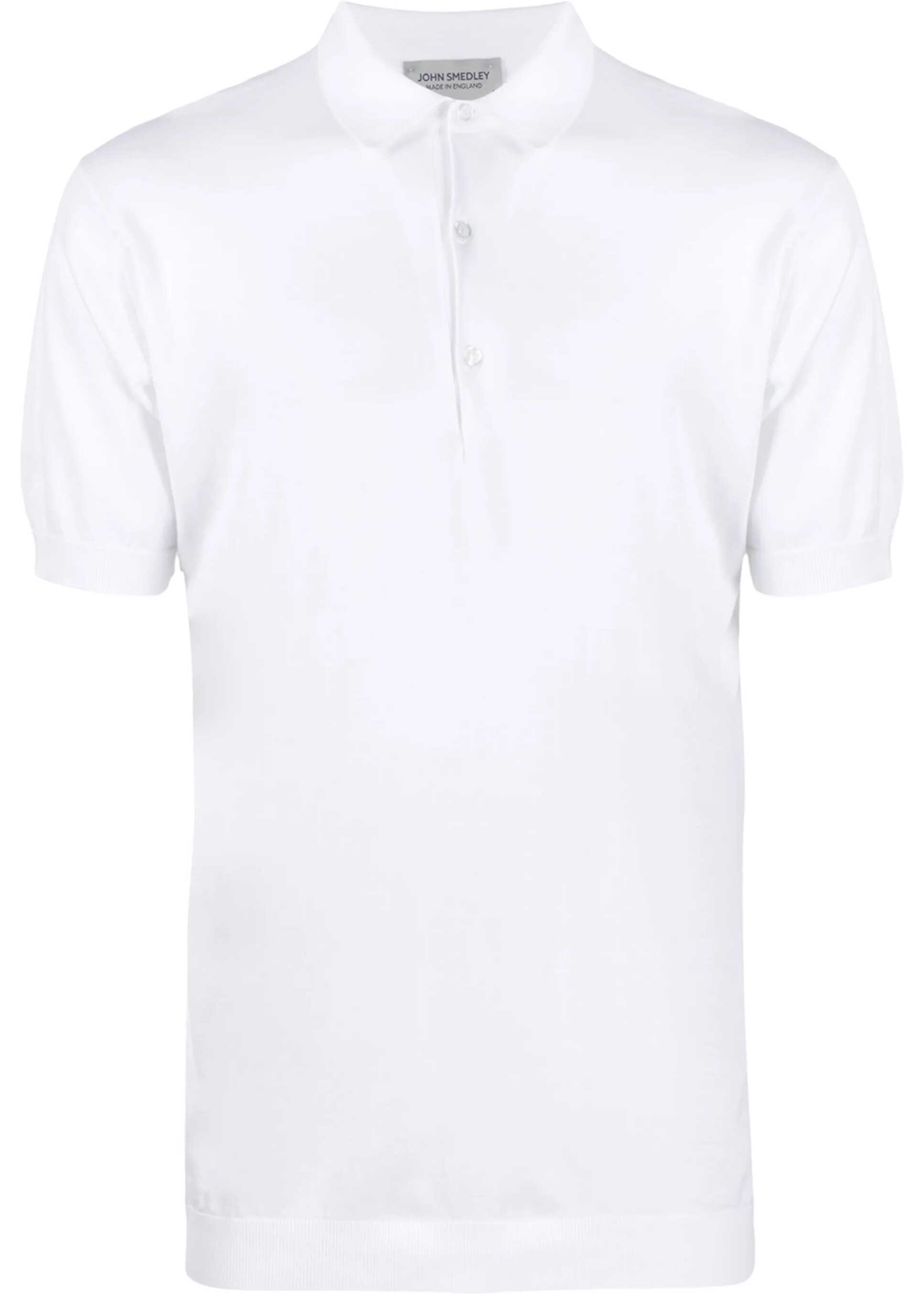 Short-sleeved Adrian polo shirt in soft white Sea Island cotton. It features classic collar, front buttoned placket and ribbed trims. Regular fit.