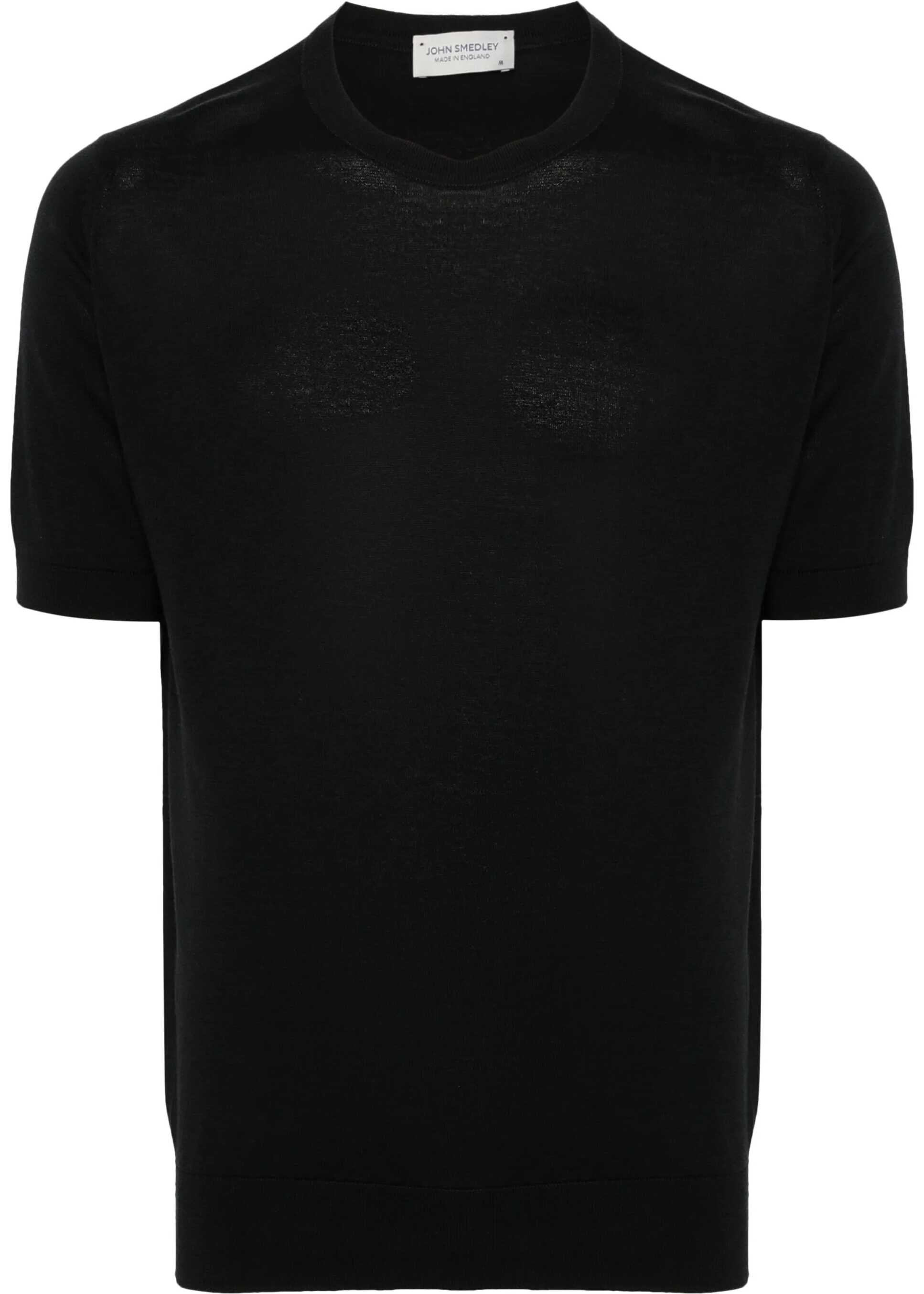 Short-sleeved crewneck Kempton t-shirt in soft black Sea Island cotton. Ribbed collar, cuffs and hem. Regular fit.