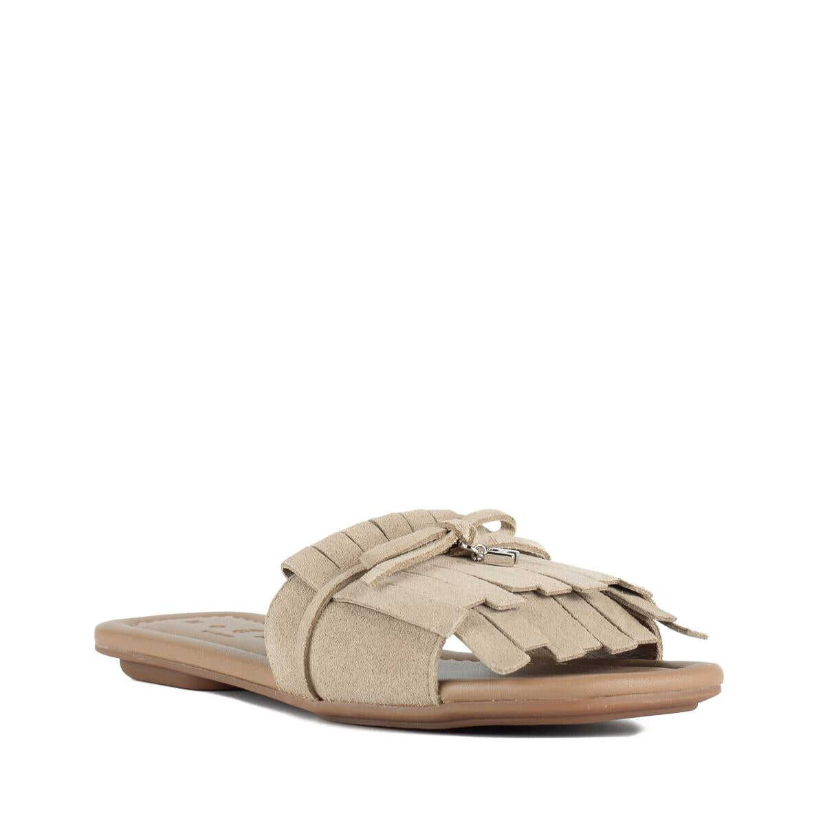 Item Color: Rope | Made in Italy | Hogan sandal made of suede | Leather-colored interior with engraved logo | Suede upper band with tone-on-tone fringing | Logo H charm on silver-colored band | Composition: 100% Leather