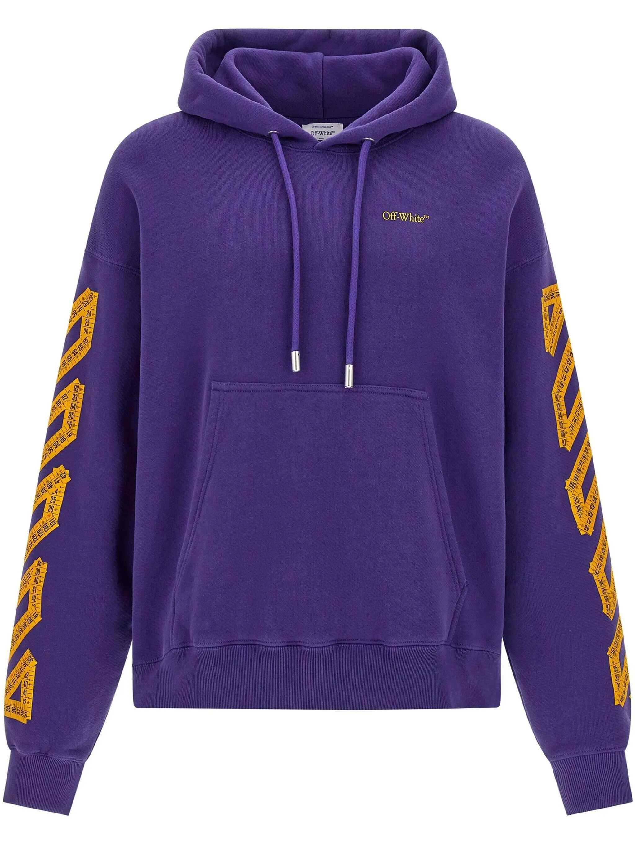 Gauze cotton hoodie with 'Tape Arrow' pattern, kangaroo pocket, long sleeves with cuffs and dropped shoulders, side splits