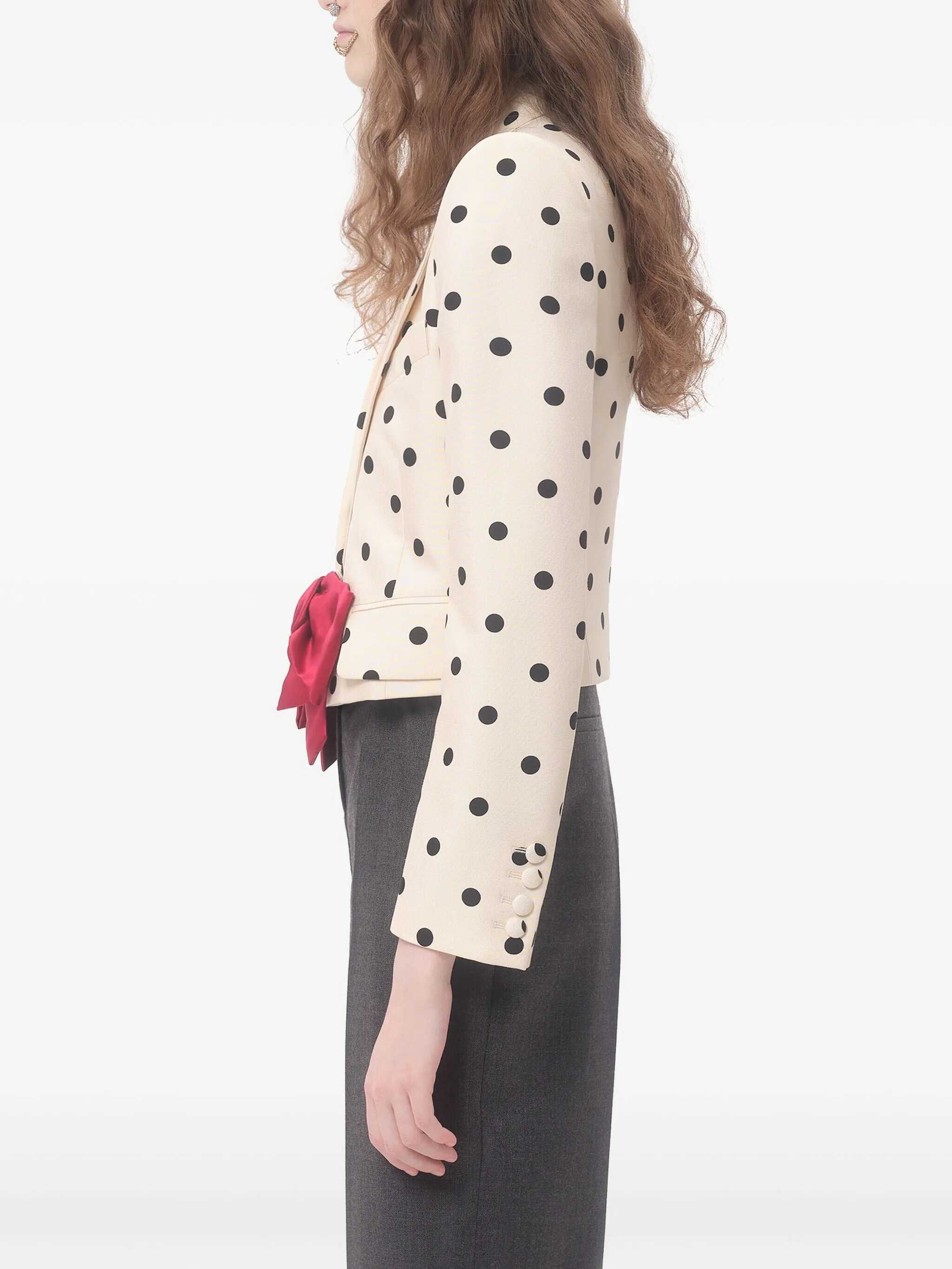 light beige front button fastening two front flap pockets buttoned cuffs polka dot print