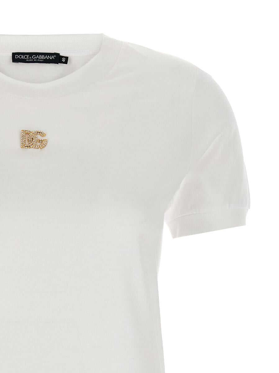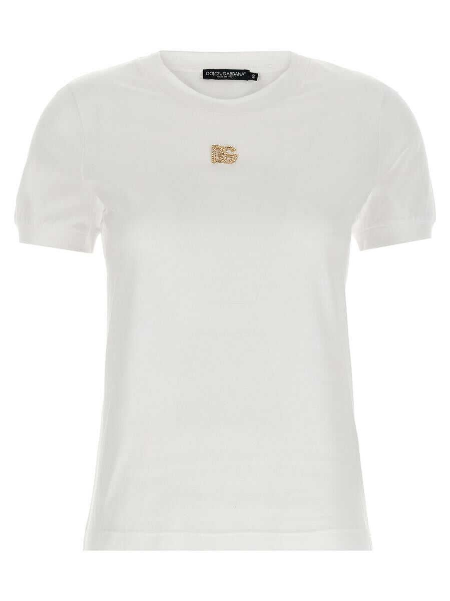 Cotton T-shirt, metal and rhinestone logo on the front, crew neck, short sleeves with cuffs