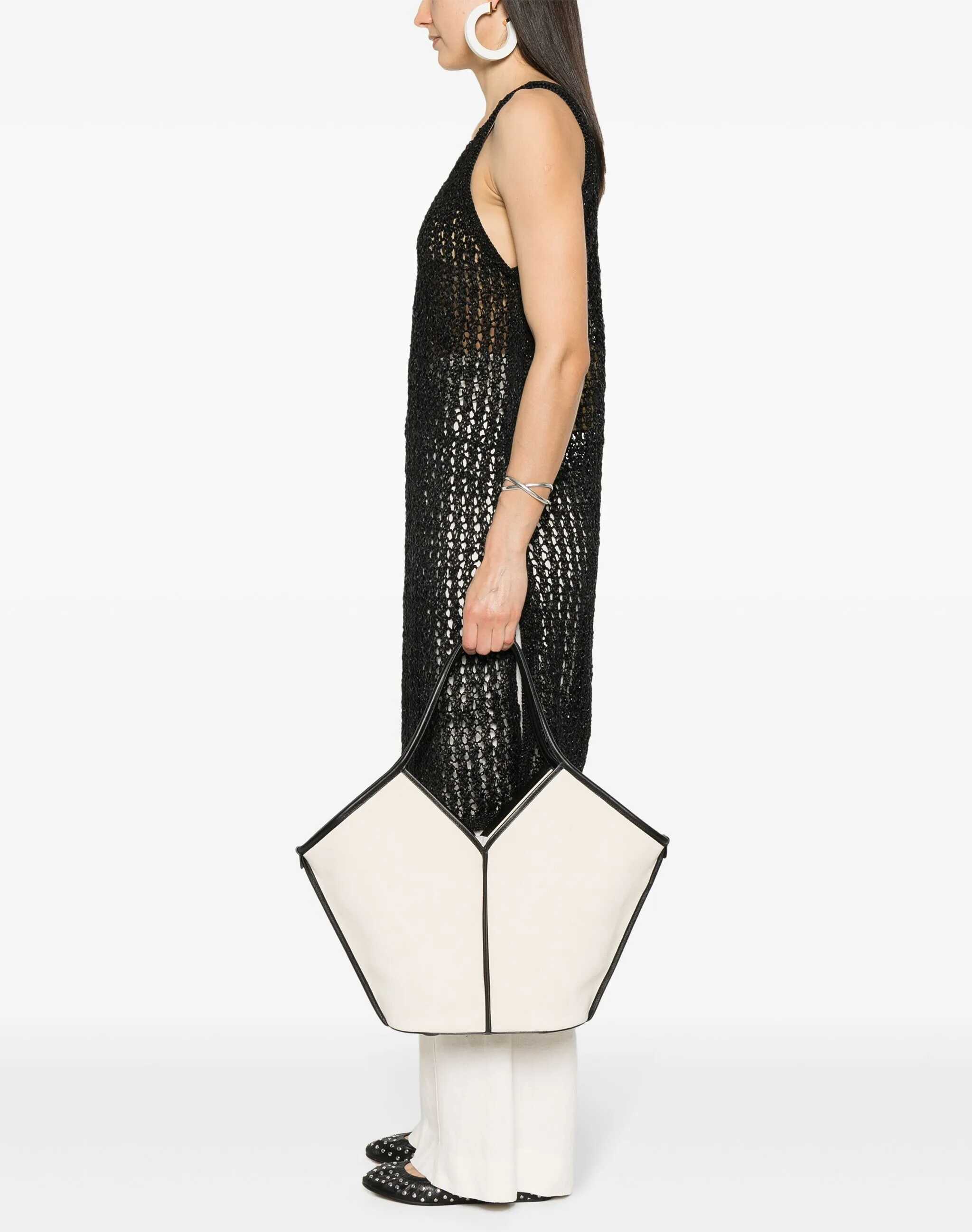 - BODY: 100% ORGANIC COTTON HANDLE TRIM: 100% CALF LEATHER POUCH: 100% COTTON- MADE IN Spain