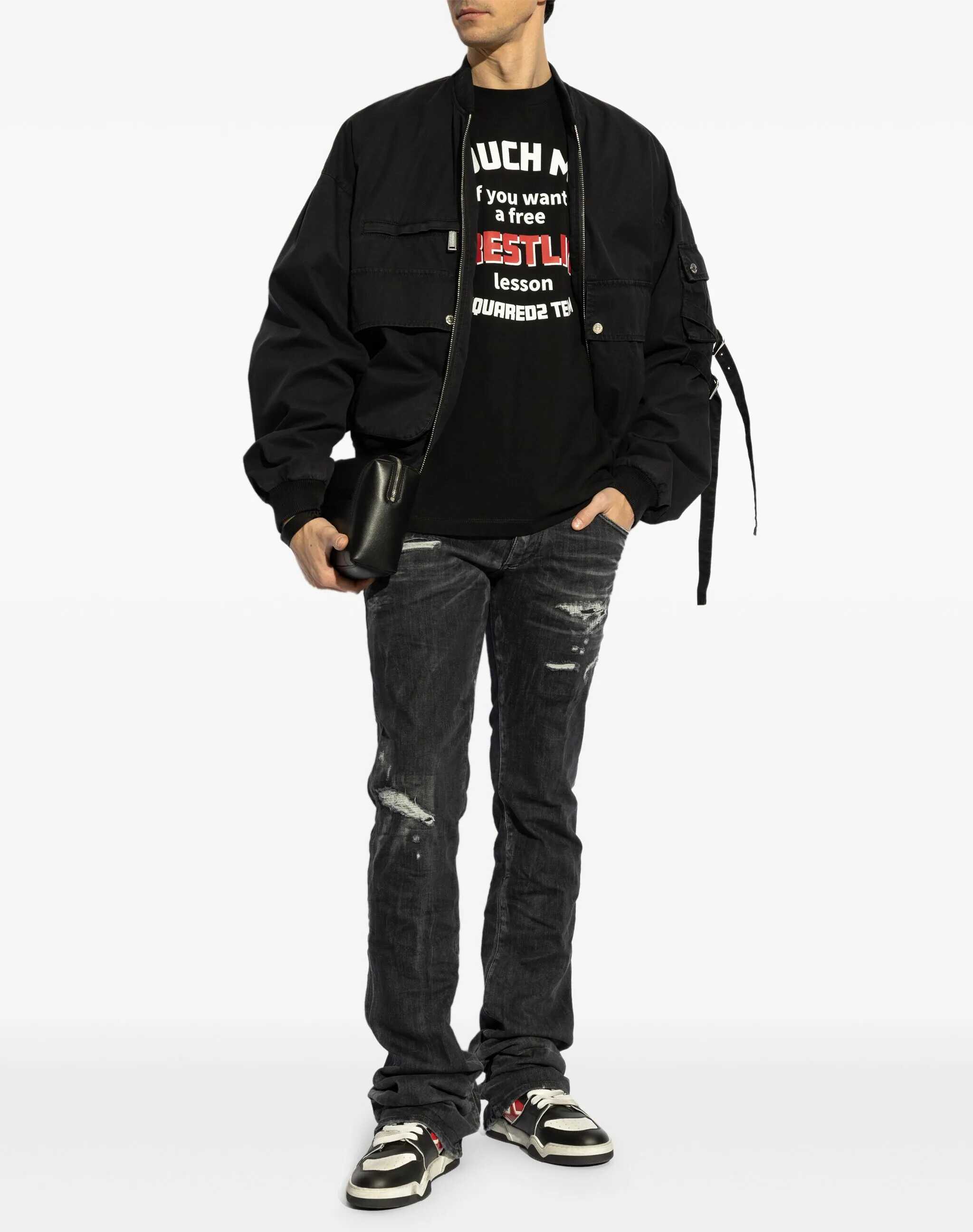 The Dsquared2 cotton T-Shirt is a modern piece with a strong character. The ribbed crew neck offers a comfortable and refined fit, while the front features a maxi writing that captures attention, accompanied by the iconic monogram of the brand, which adds a touch of recognisability and style.