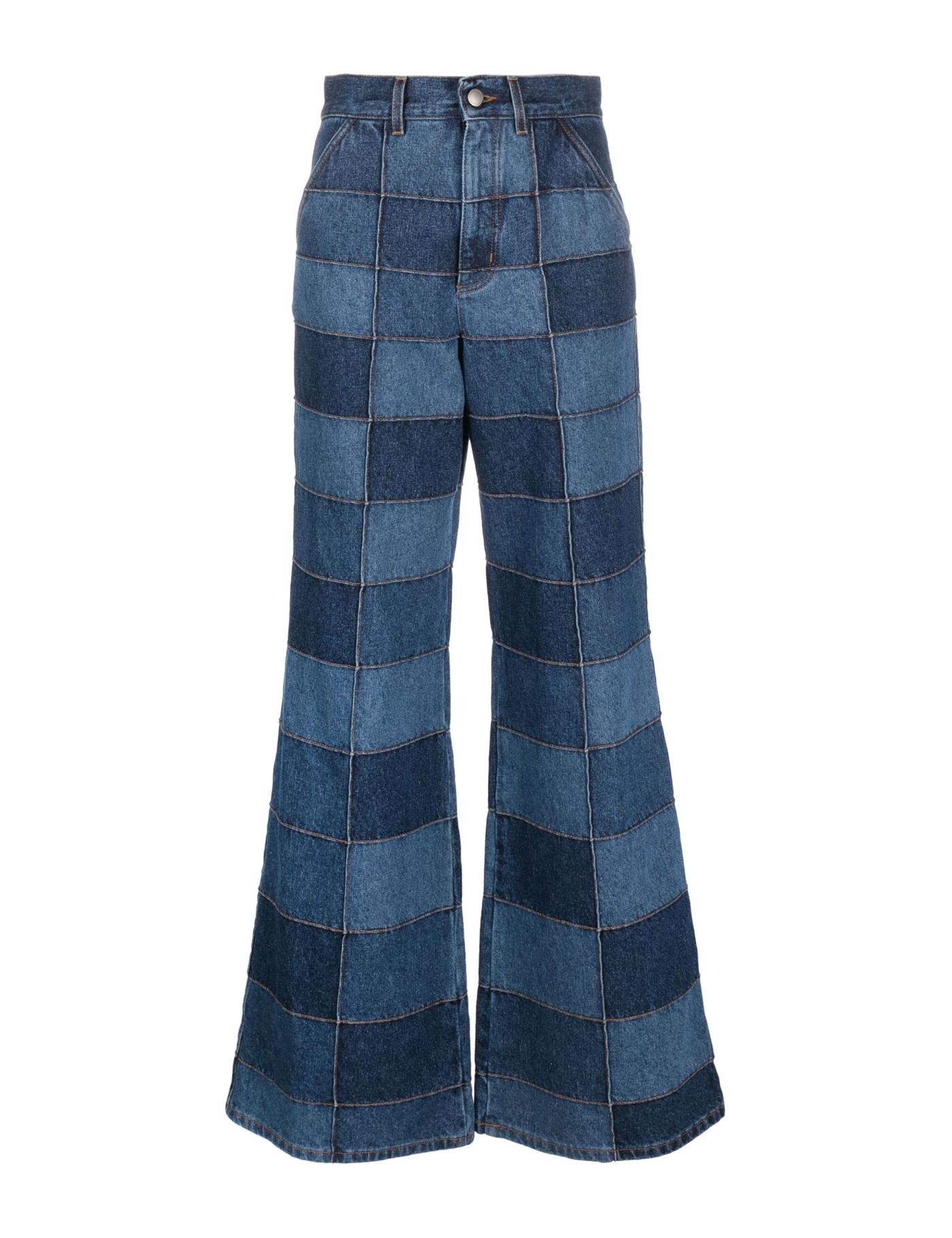 Taking inspiration from retro styles, Chloé presents these jeans in a playful patchwork design. Sitting high at the waist, the pair falls to a bold wide-leg silhouette.