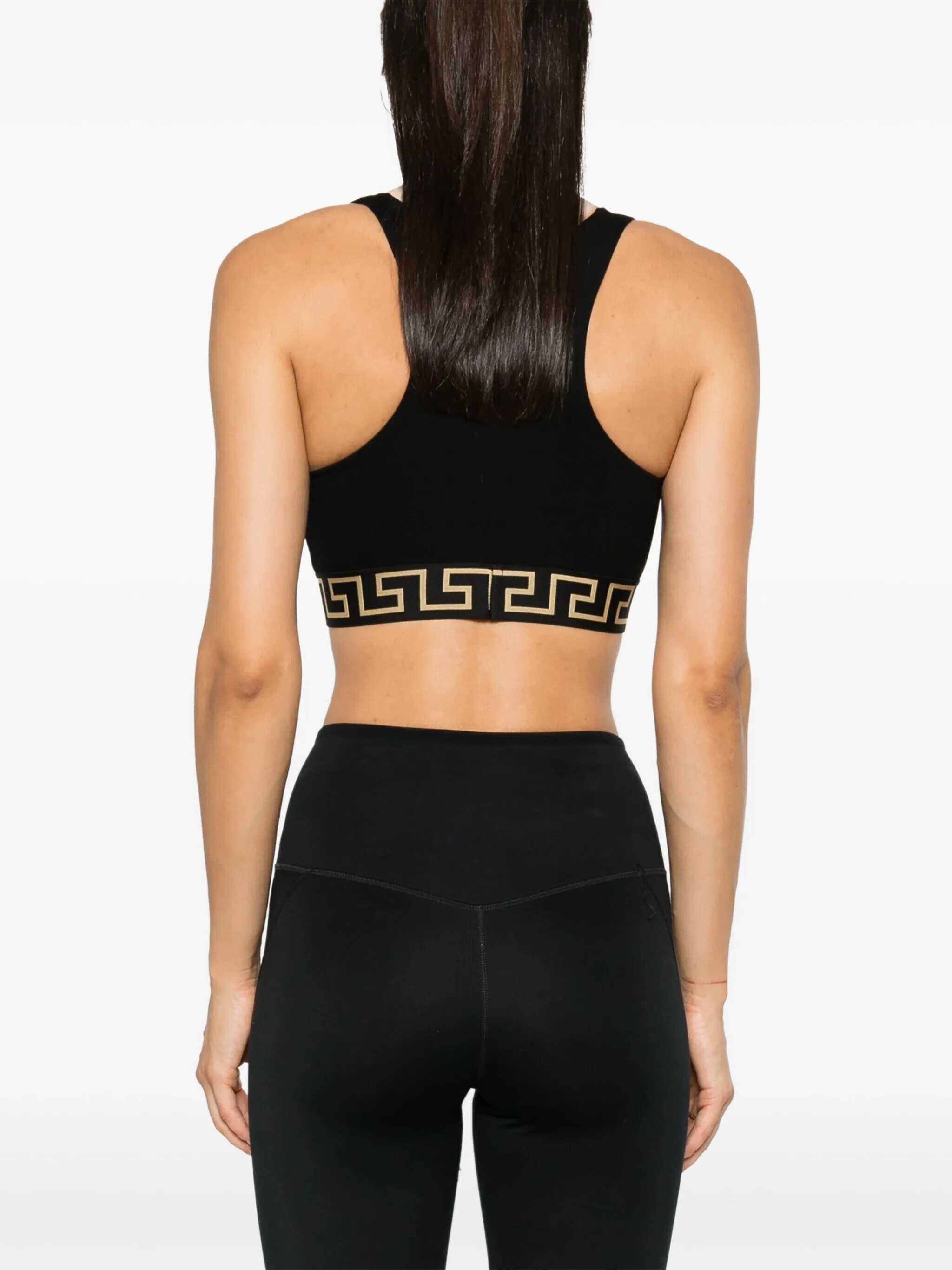Elasticated band at bottom with golden jacquard Greca border and golden jacquard Medusa motif at center